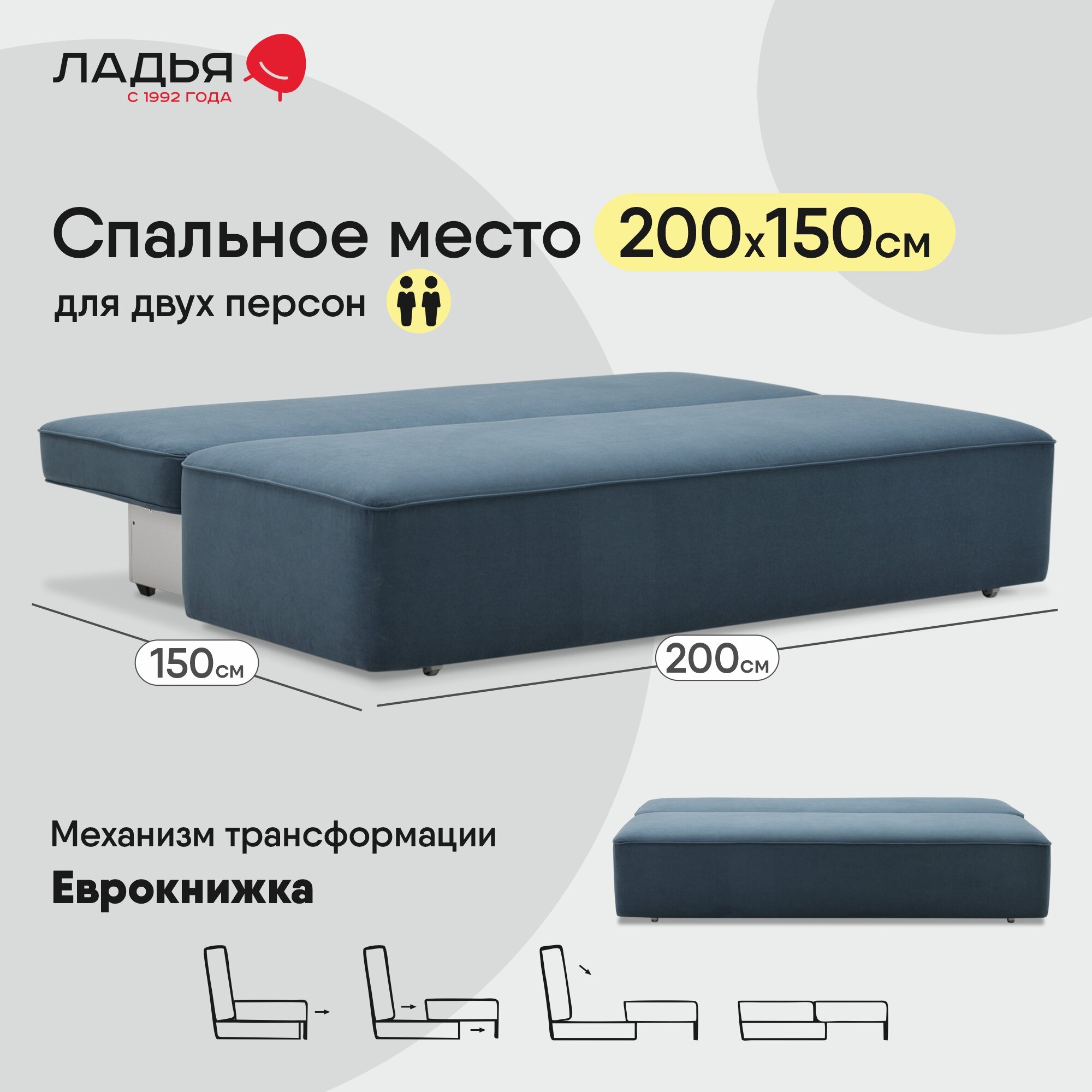 Купить Диван-кровать прямой Верро размер: 203х100х86 см, еврокнижка, Ладья, в гостиную, спальню, спальное место: 200х150 см, Velutto 53