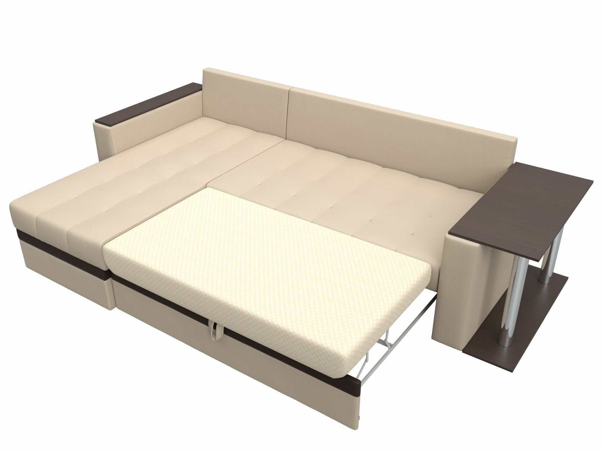 Купить Диван угловой Атланта М левый угол, экокожа бежевая, вставка экокожа коричневая