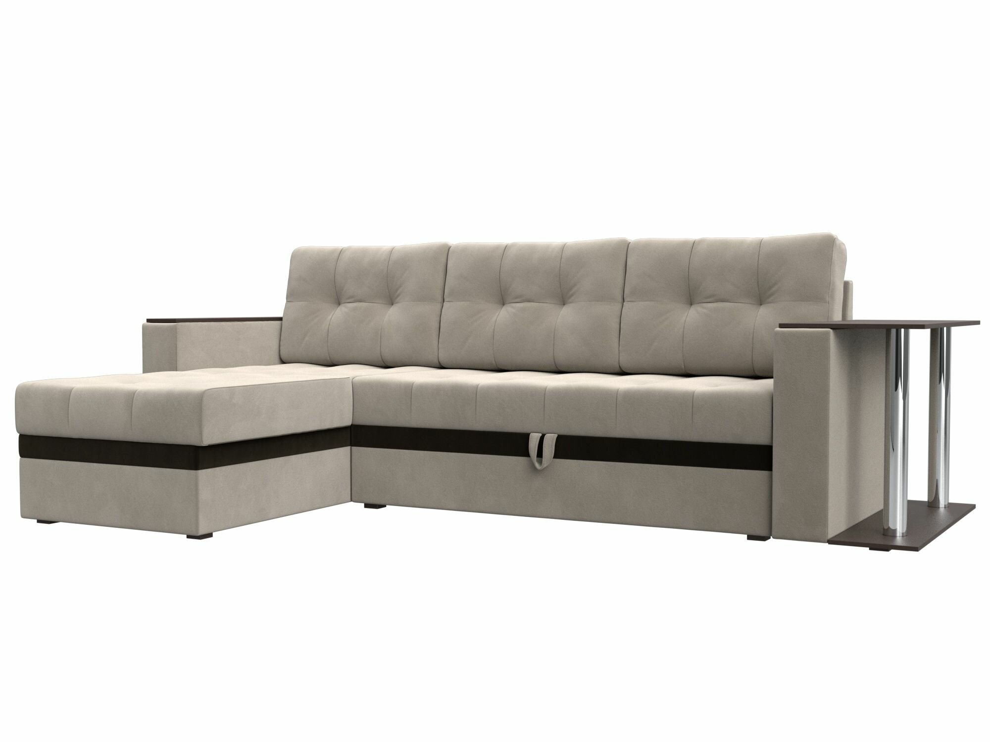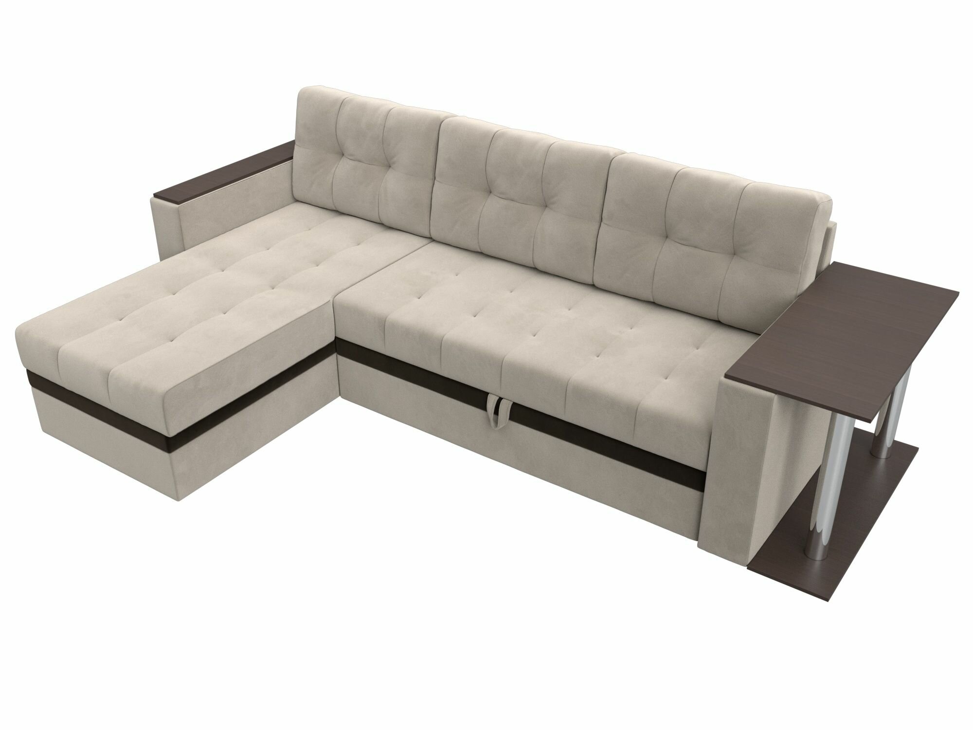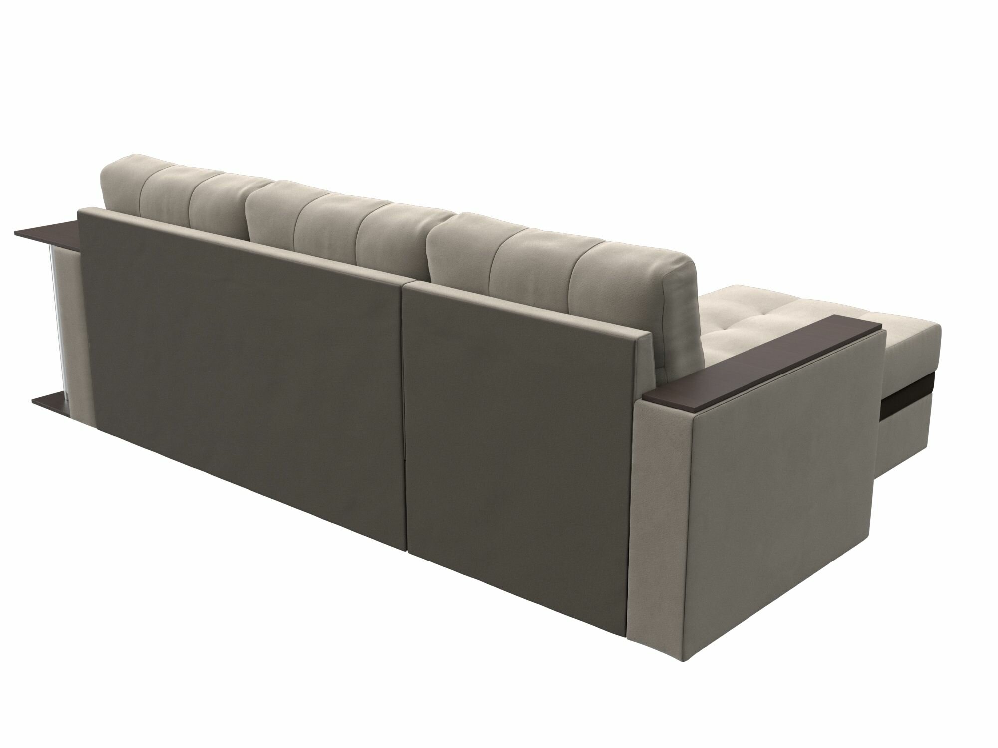 Диван угловой Атланта М левый угол, велюр бежевый, вставка велюр коричневый