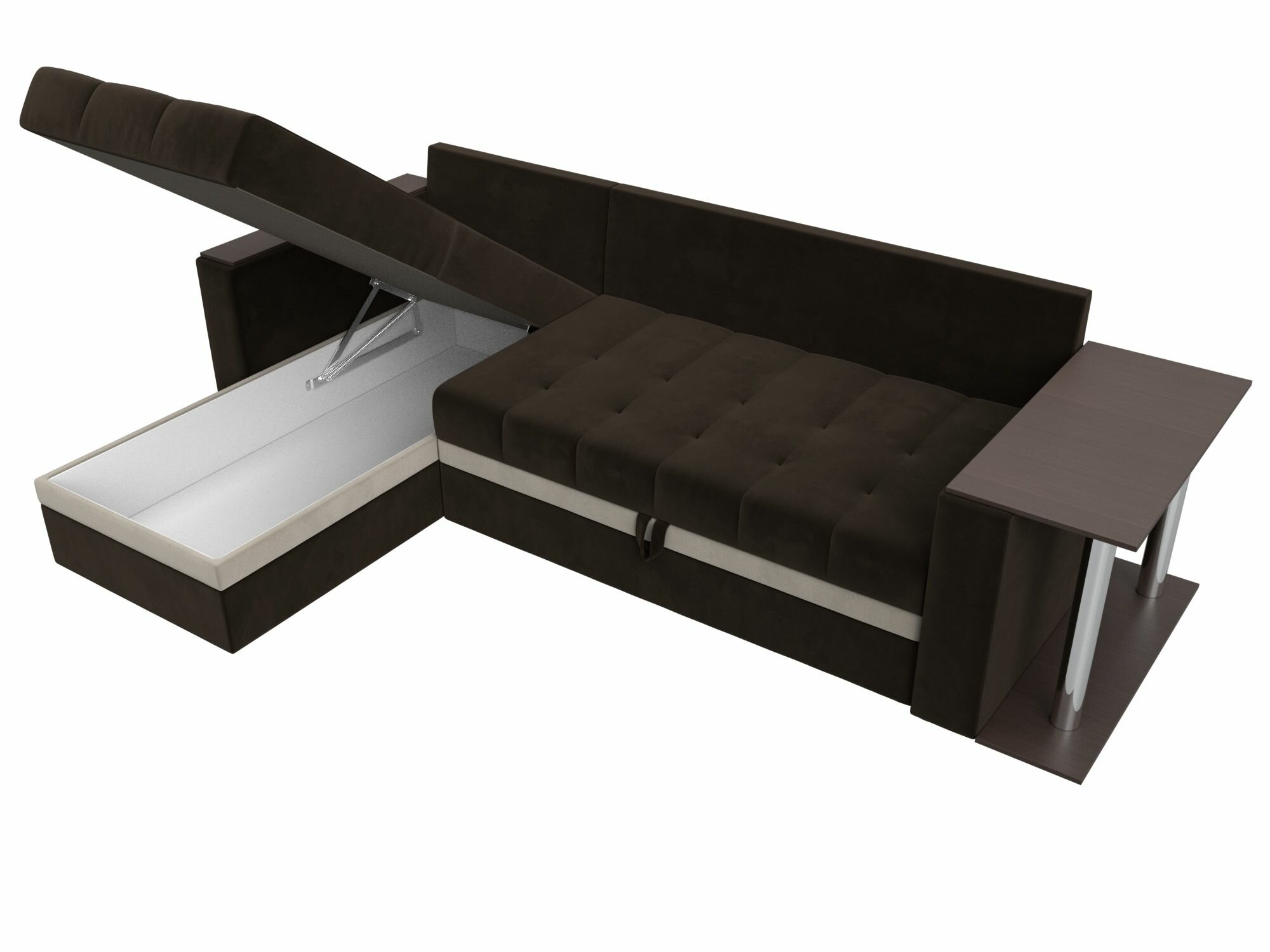 Диван угловой Атланта М левый угол, велюр бежевый, вставка велюр коричневый