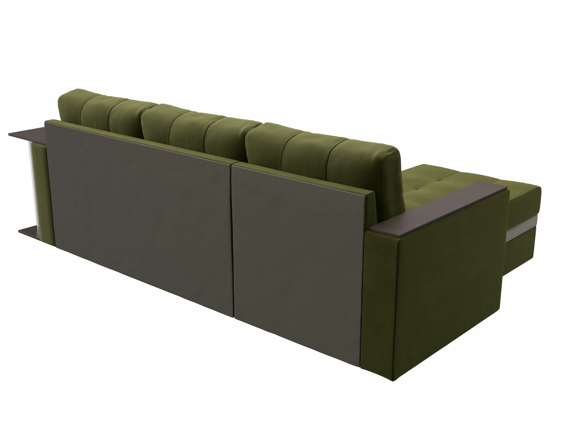 Диван угловой Атланта М левый угол, велюр зеленый, вставка велюр коричневый