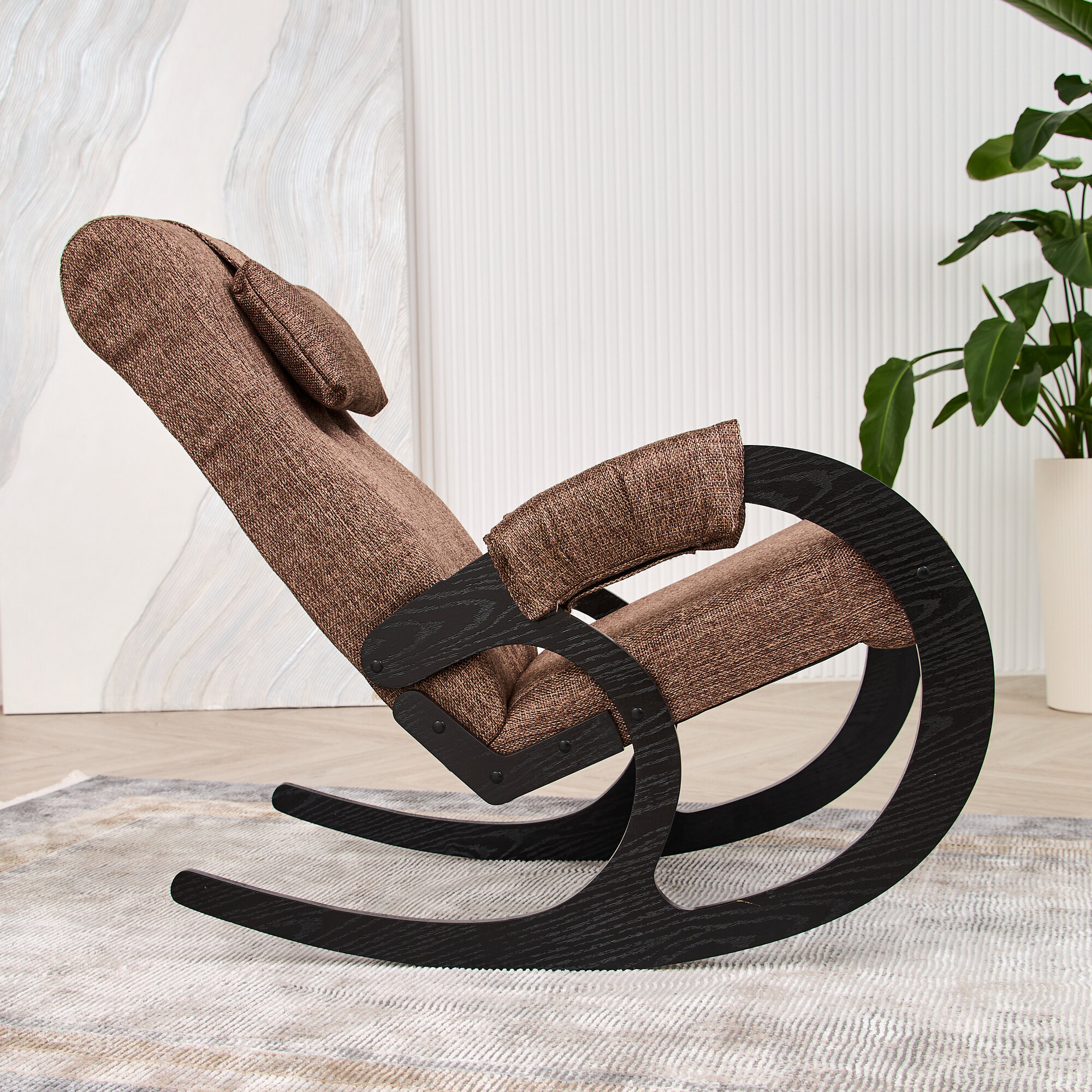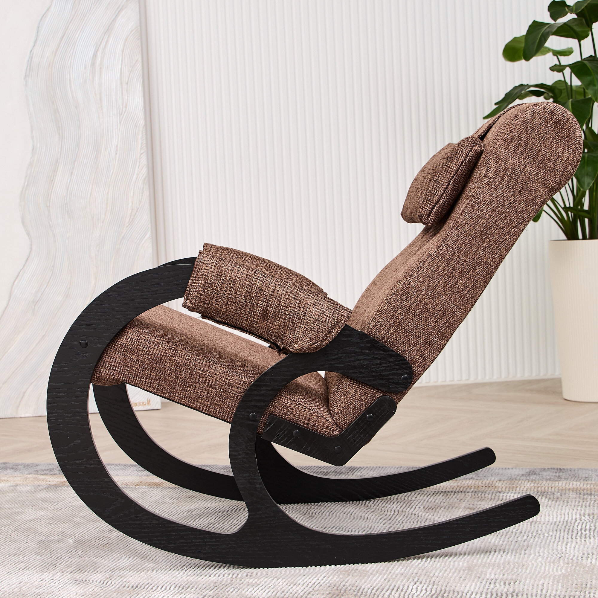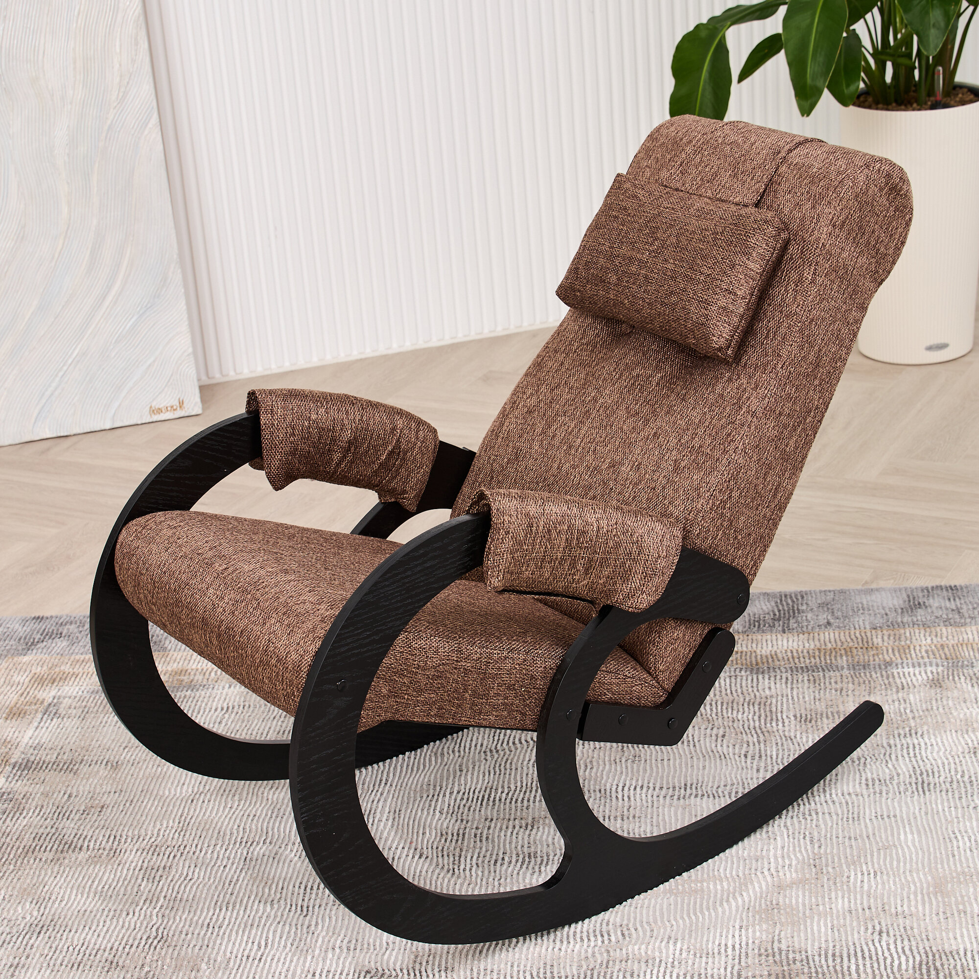 Кресло-качалка AVK, коричневое/венге, с подлокотниками, обивка рогожка интересное: