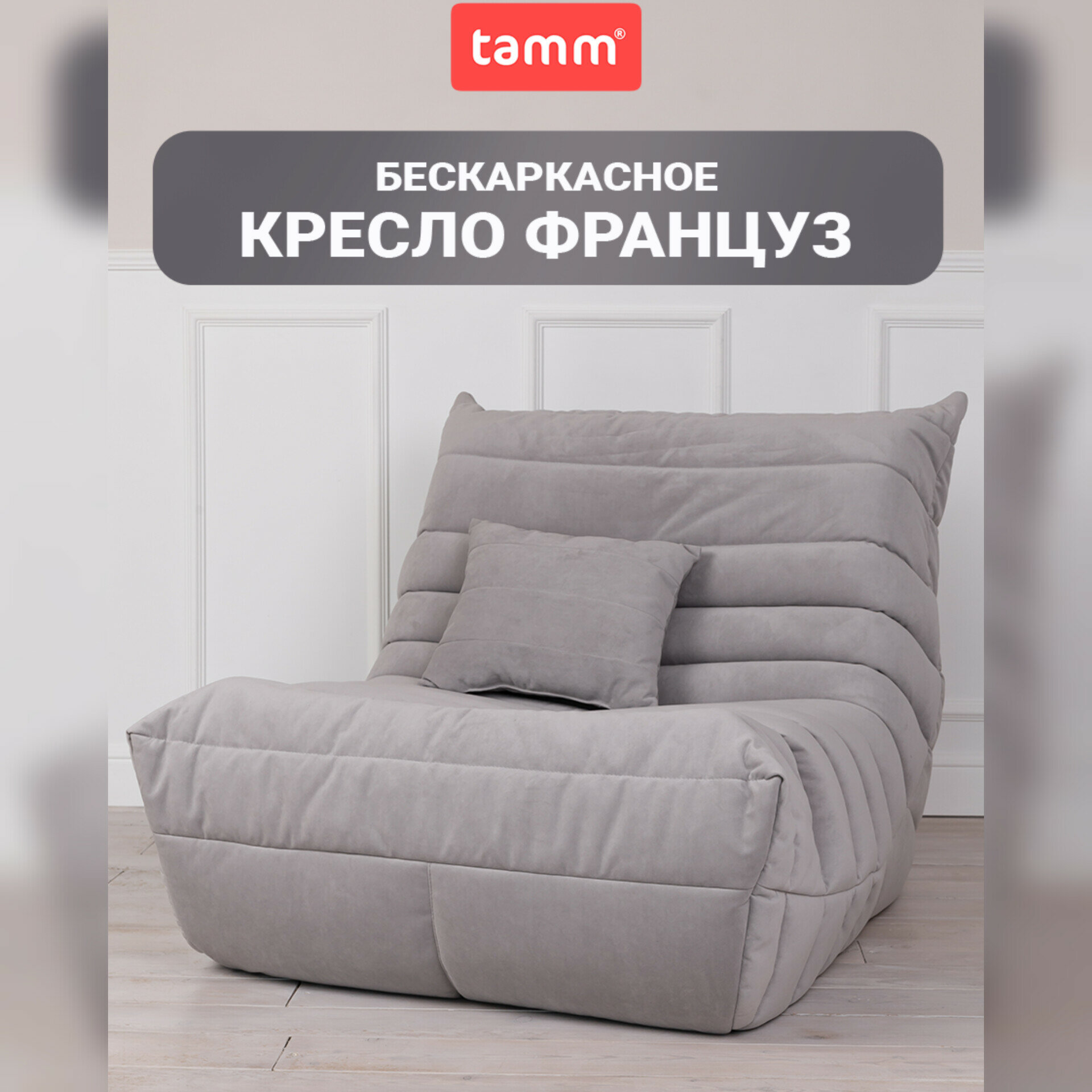 Кресло бескаркасное, кресло мешок, диван, велюр , Tamm, Светло серый интересное: