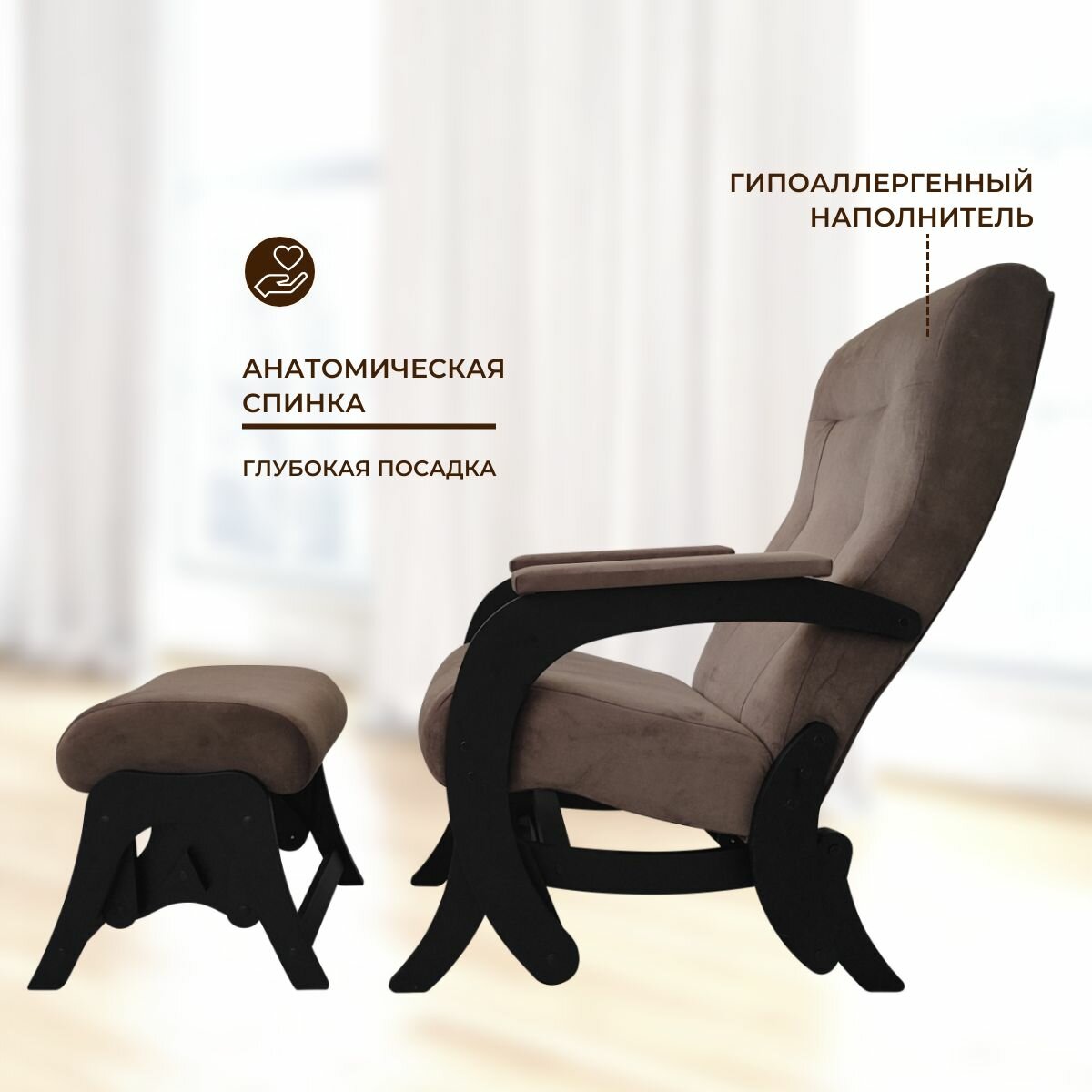 СохранитьКресло-маятник с пуфиком для ног комплект Гранд, коричневое венге интересное: