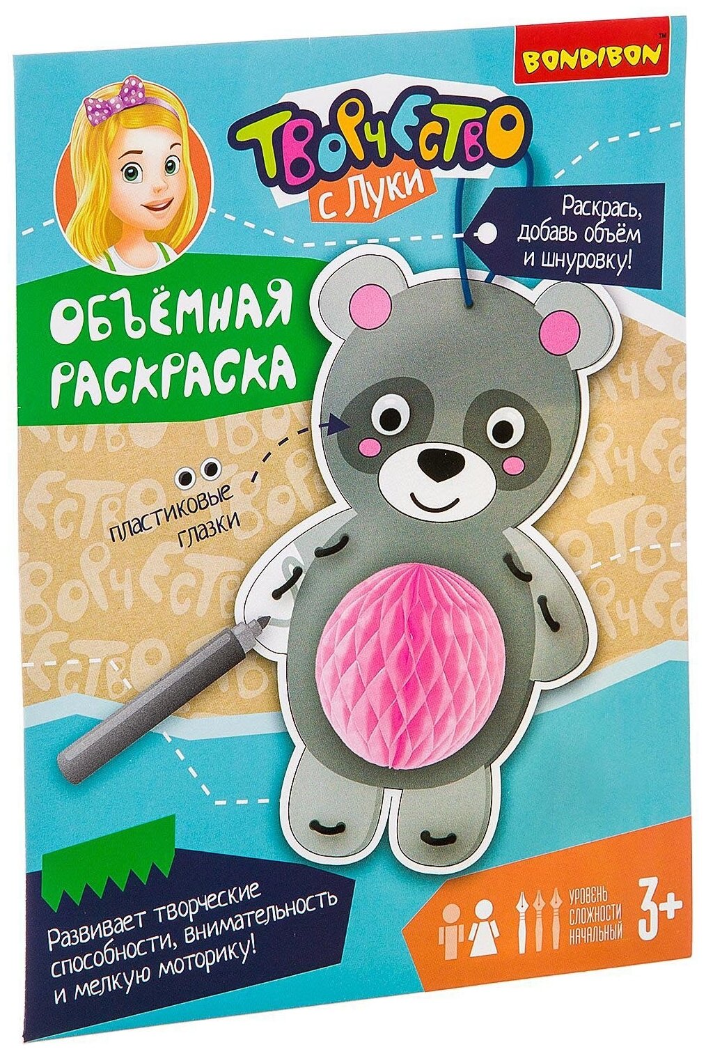 Набор для творчества BONDIBON Объемная раскраска "Мишка" (ВВ2458) интересное: