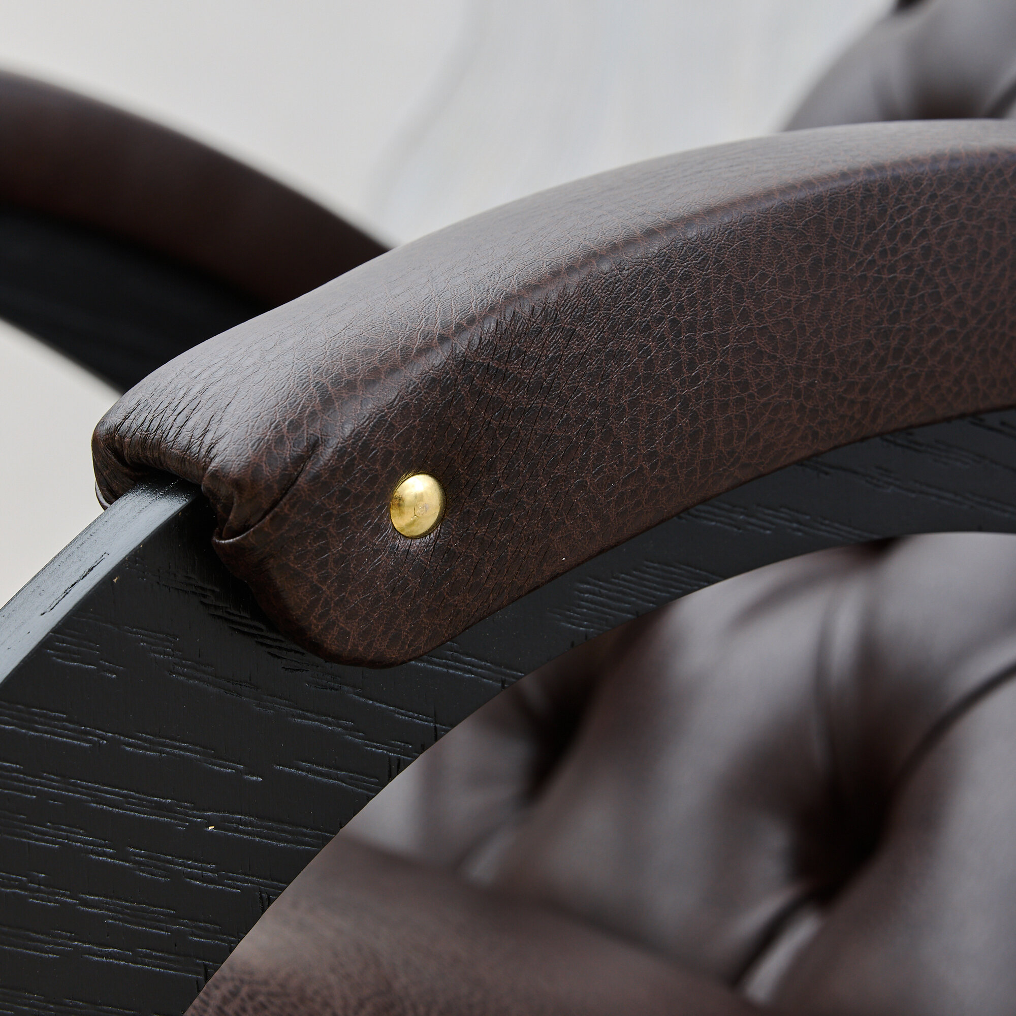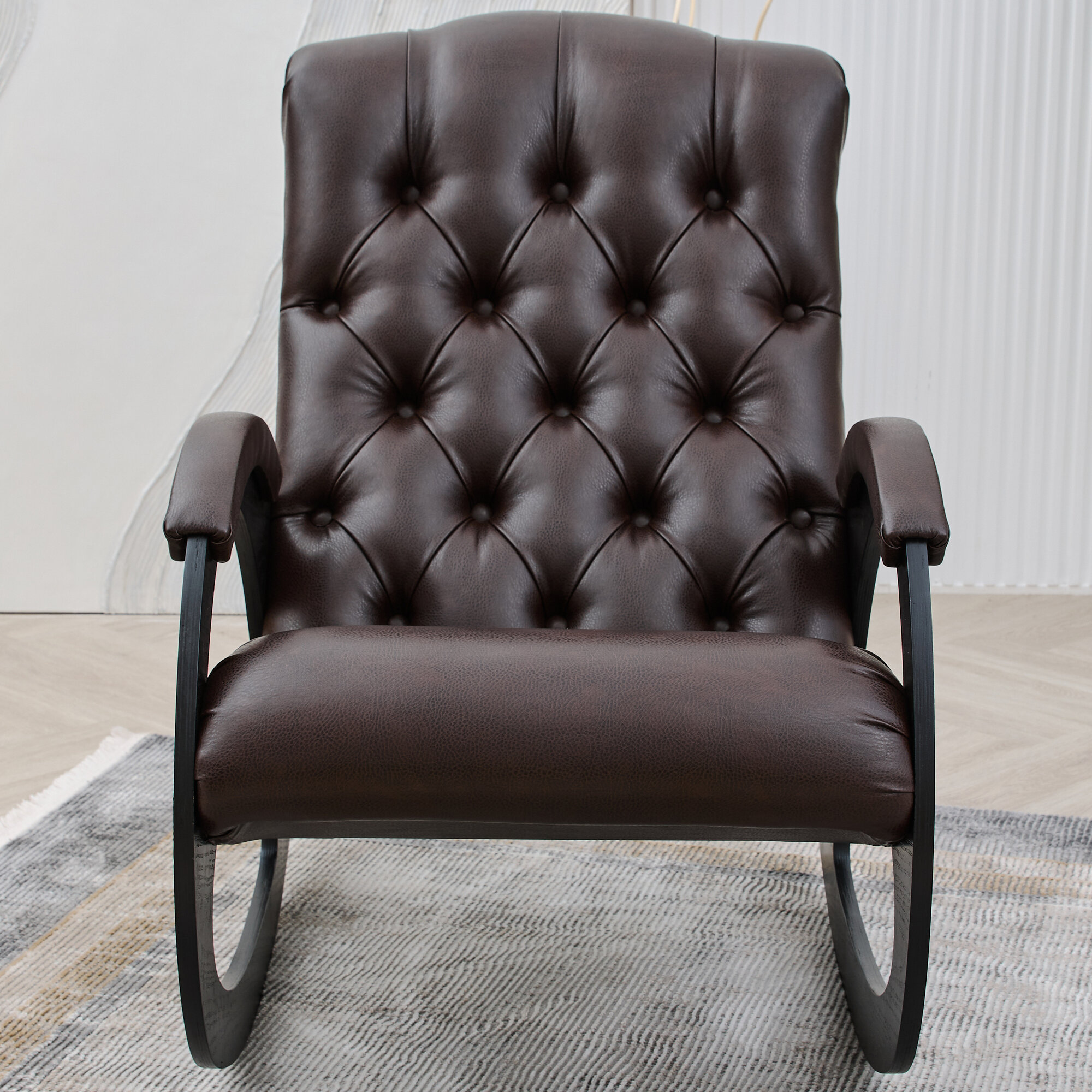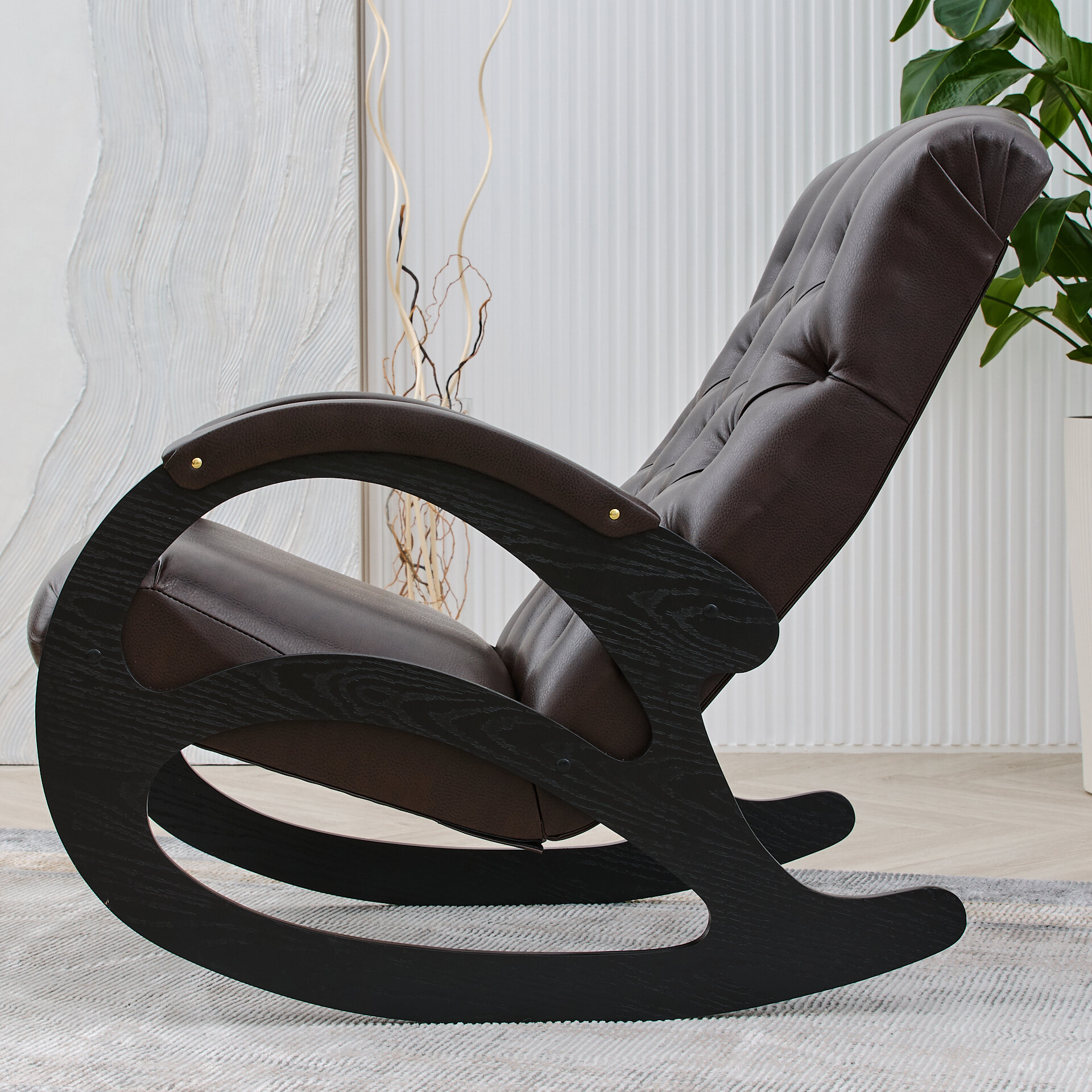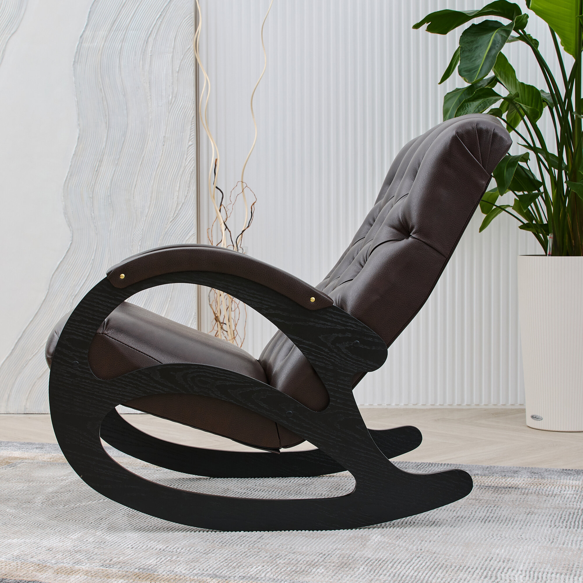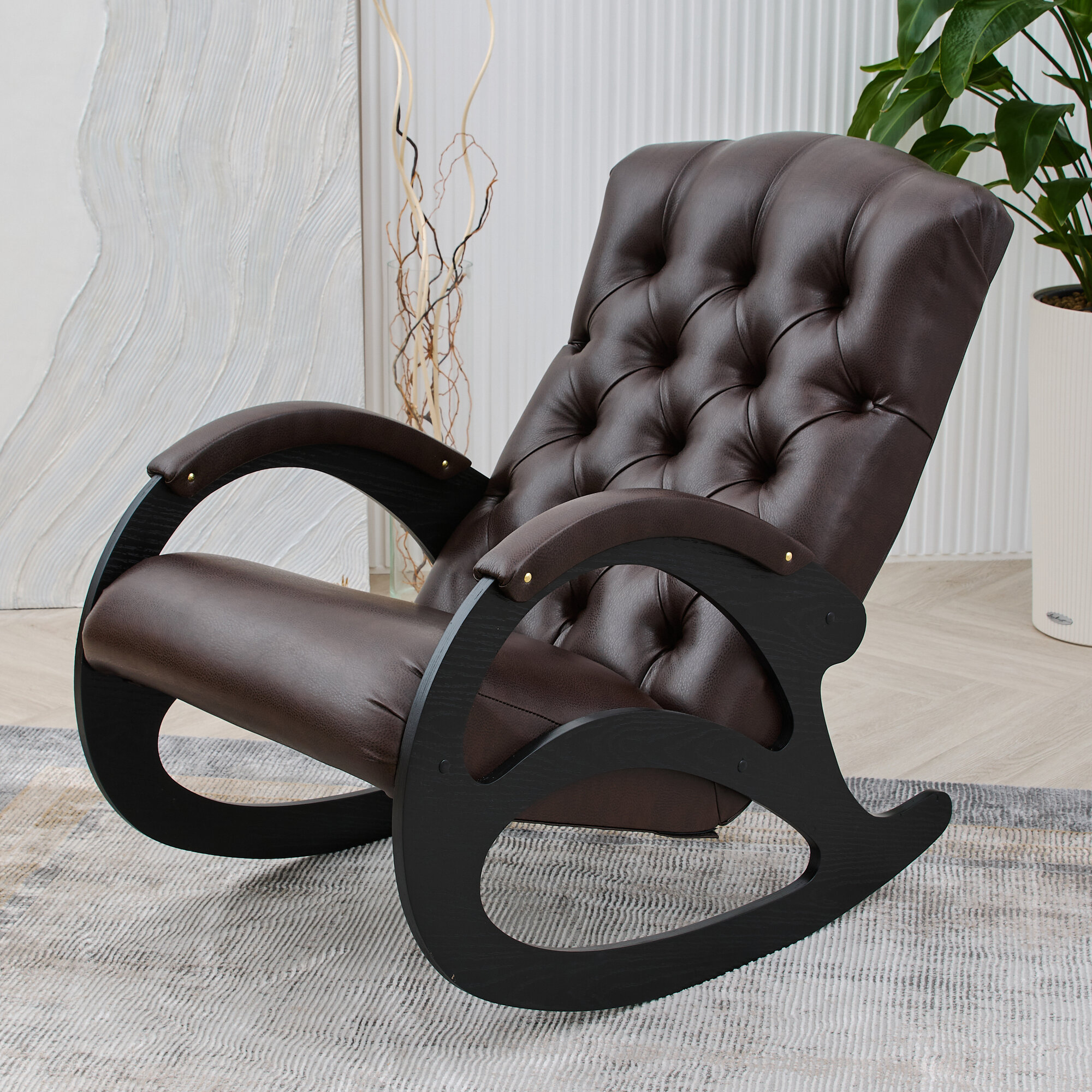 Кресло-качалка кожаное каретная стяжка Шоколад, Венге