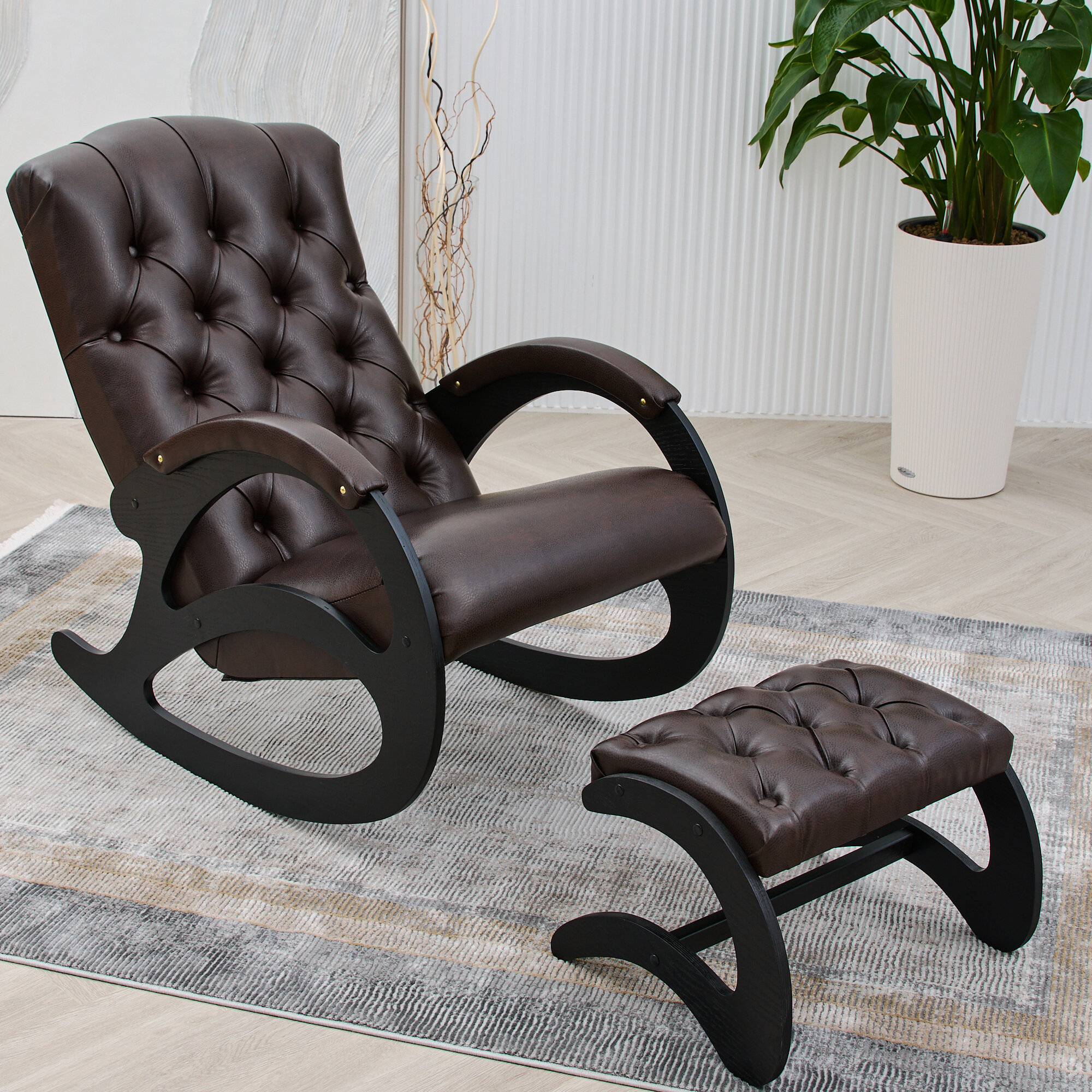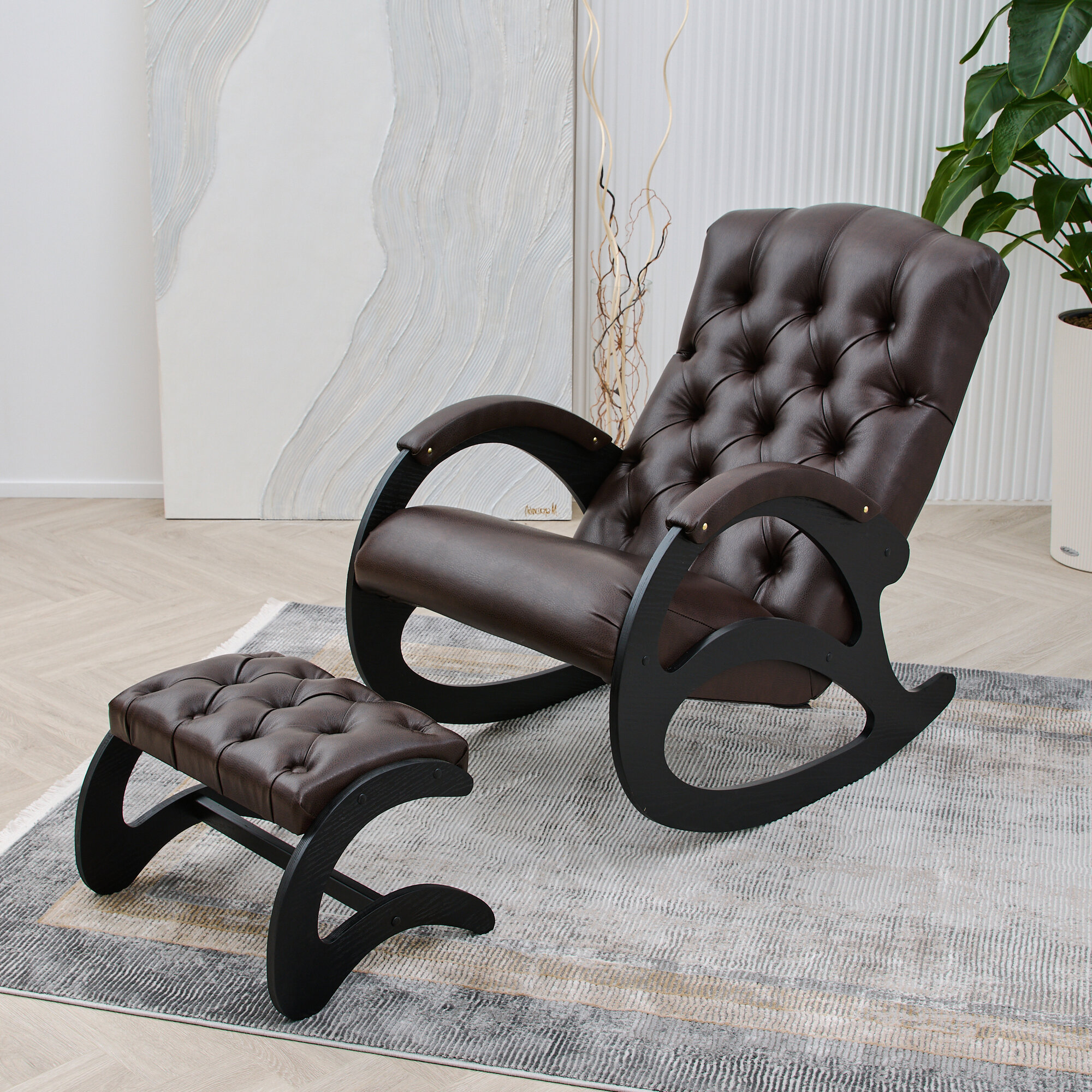 СохранитьКресло-качалка кожаное с банкеткой каретная стяжка Шоколад, Венге интересное: