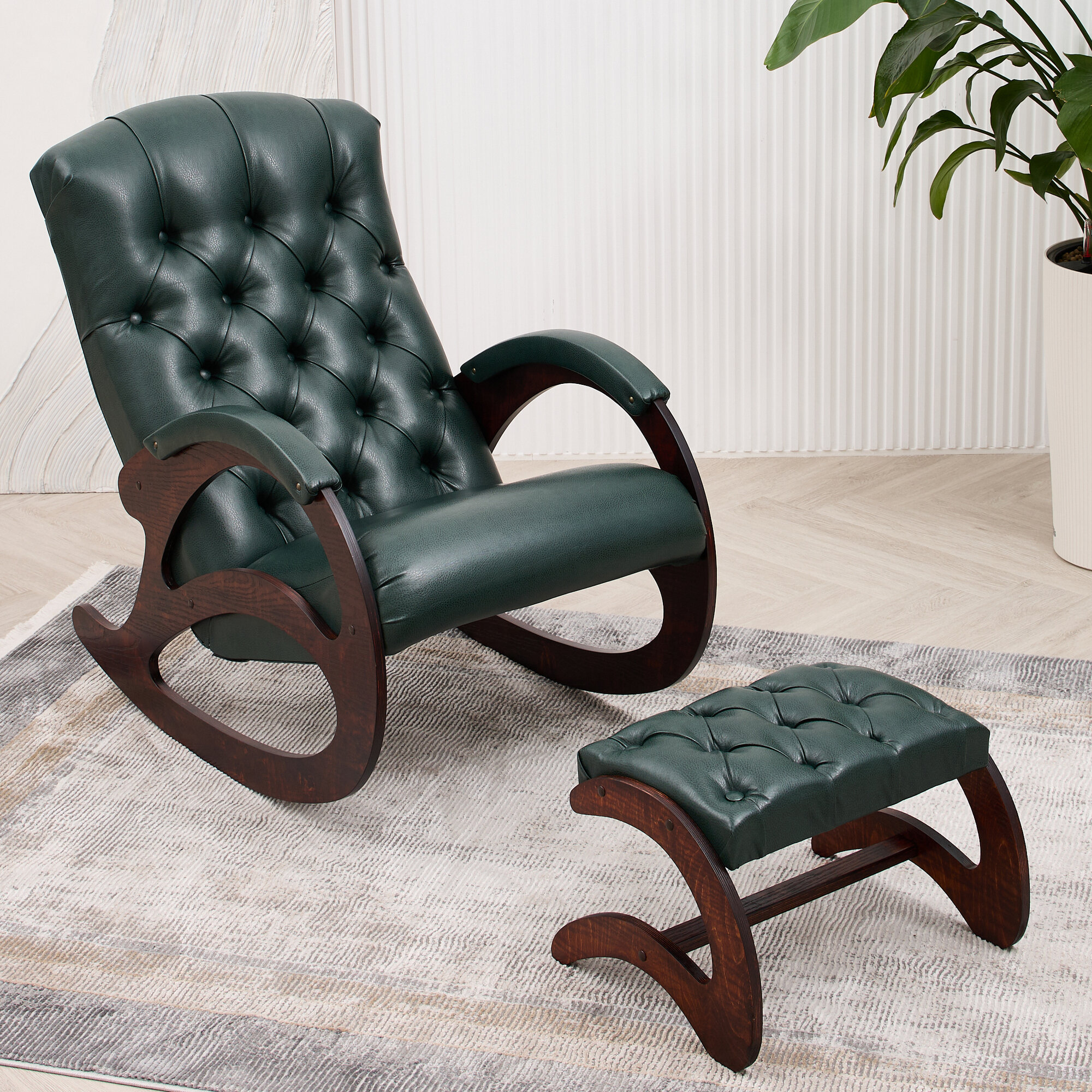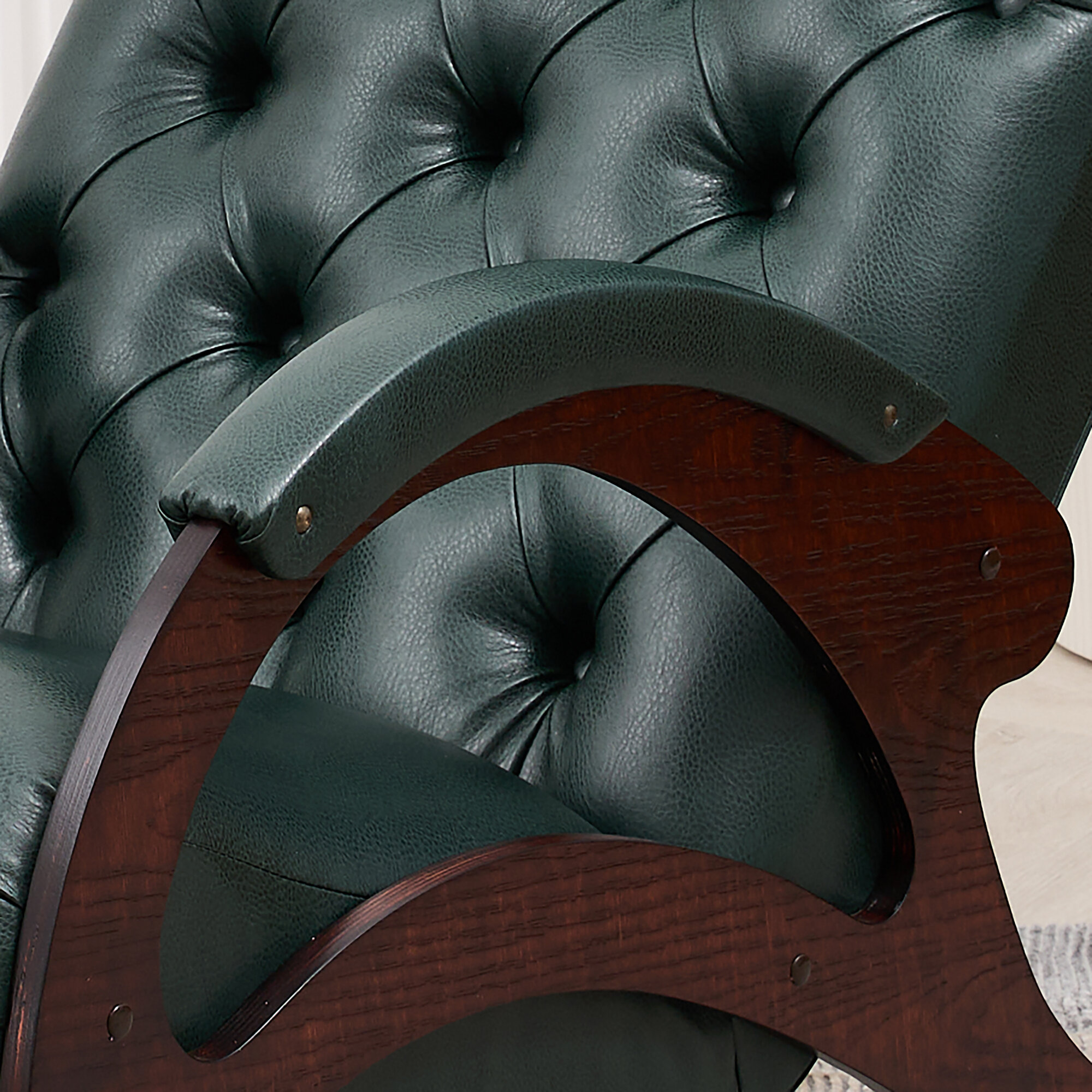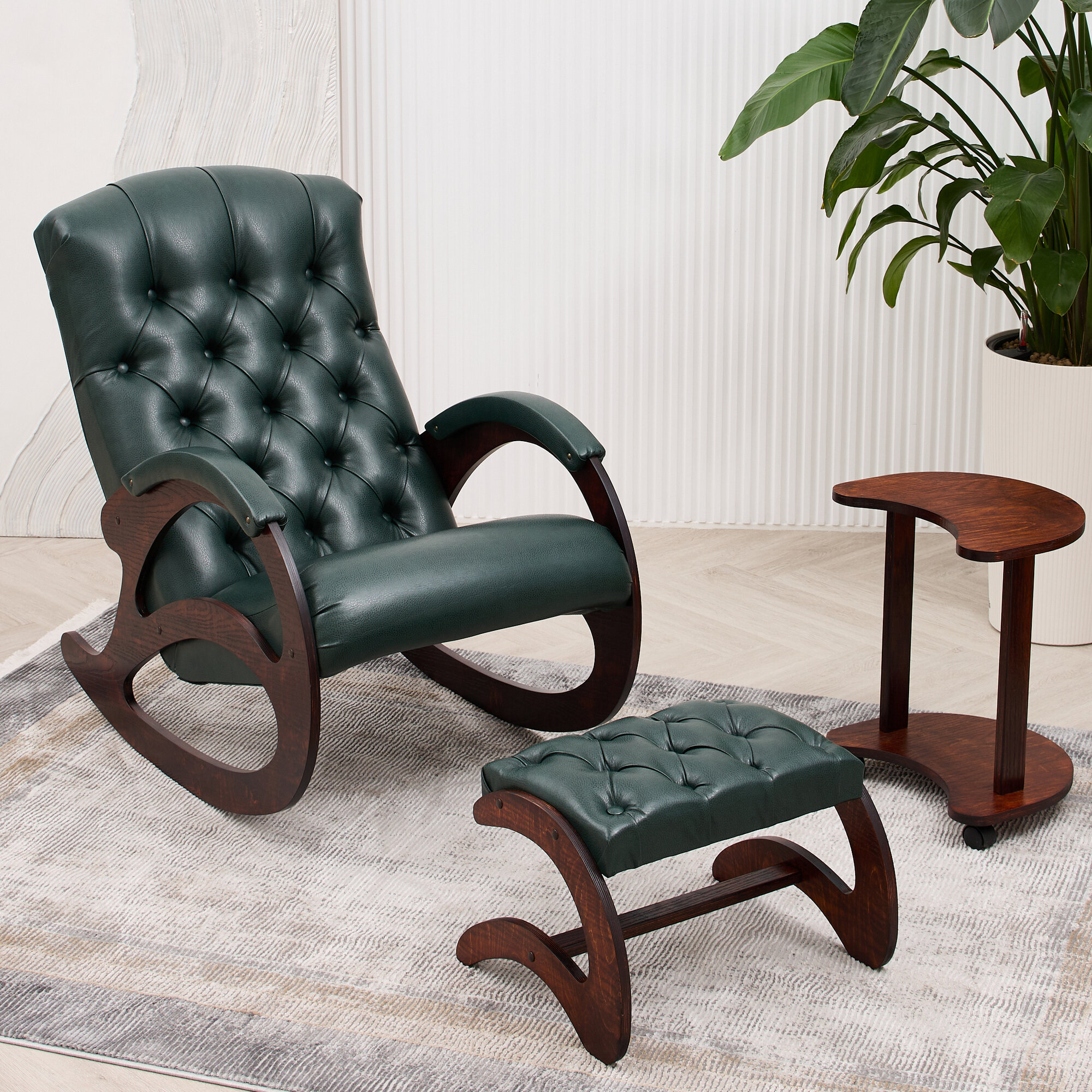 Кресло-качалка кожаное с банкеткой и столиком каретная стяжка Шоколад, Античный дуб интересное: