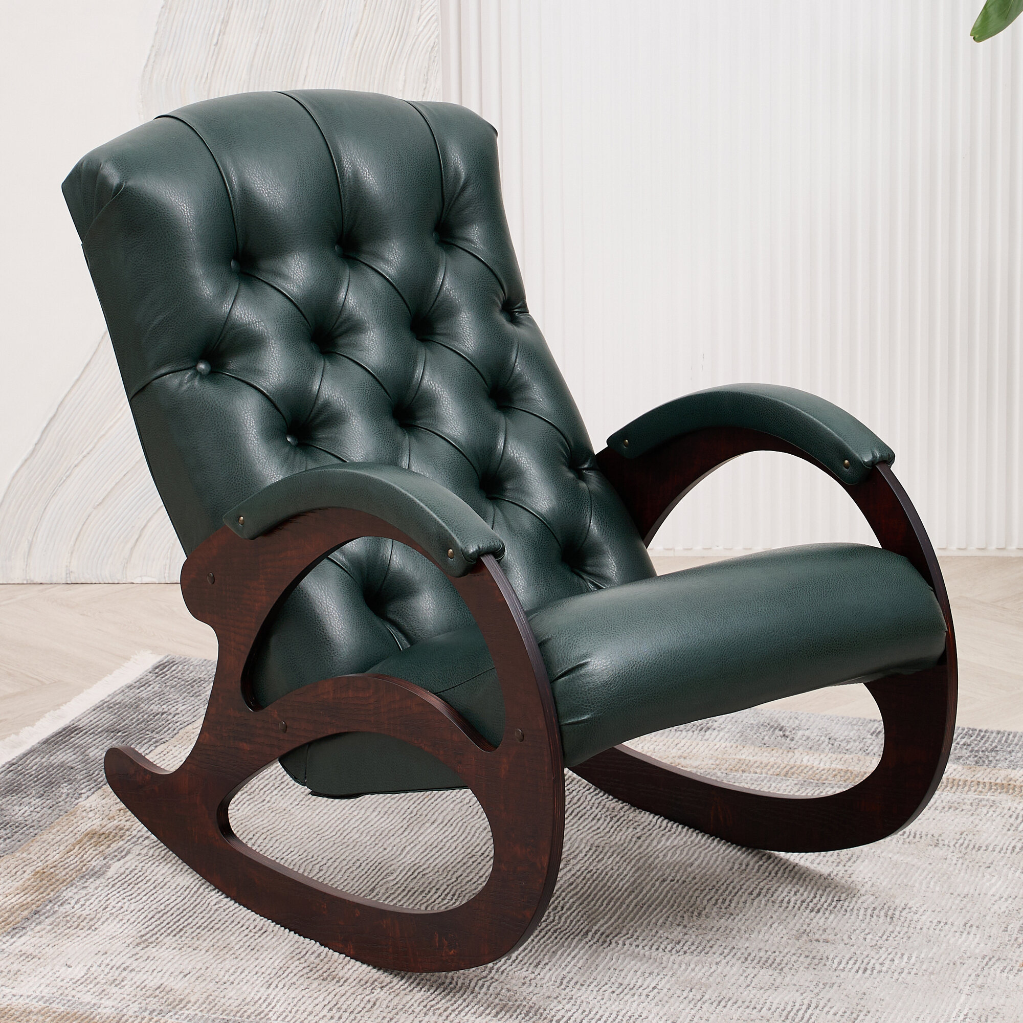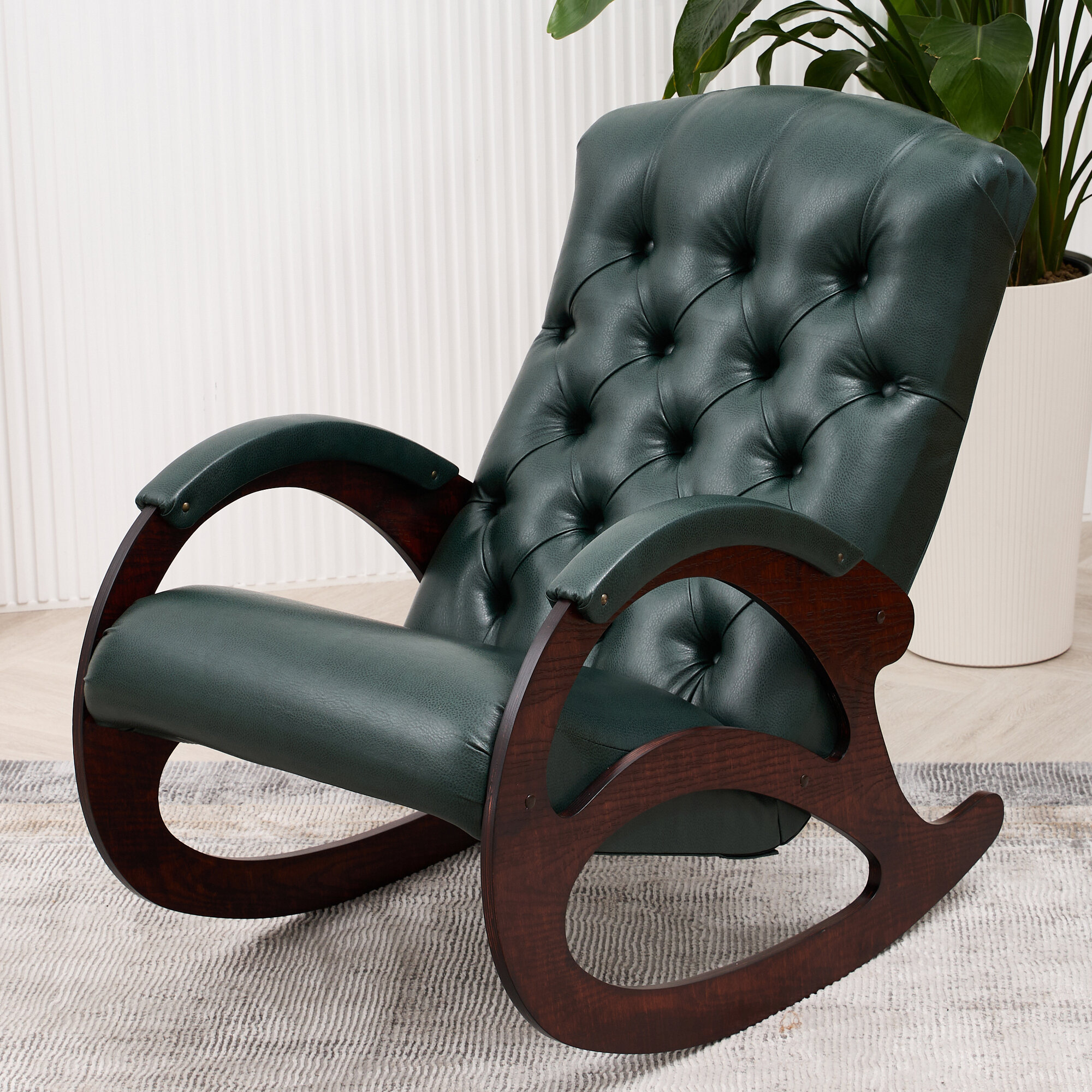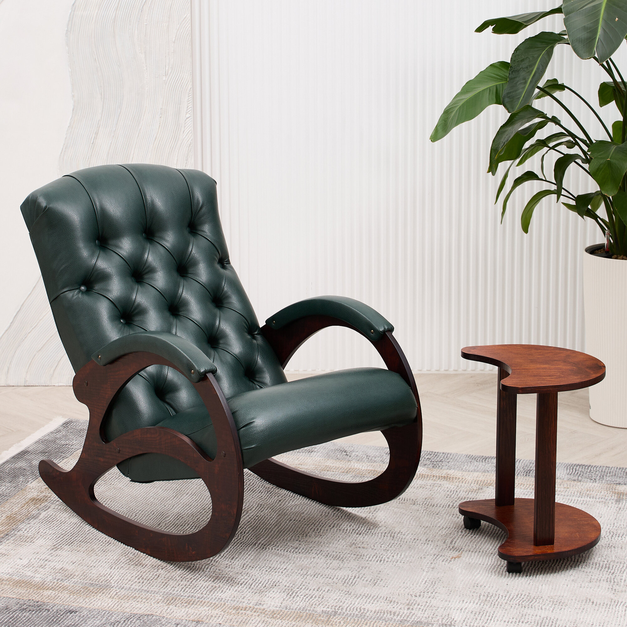 Кресло-качалка кожаное с банкеткой и столиком каретная стяжка Шоколад, Античный дуб интересное: