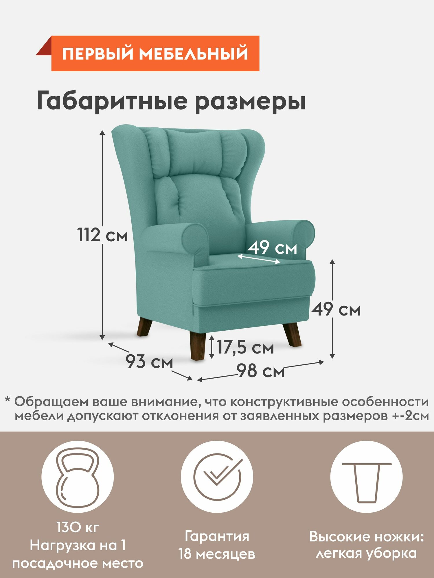 СохранитьКресло мягкое Лори для отдыха дома, в гостиную, с высокой спинкой, 98х93х112 см, Ножки массив дерева, орех / Мята, микровелюр интересное: