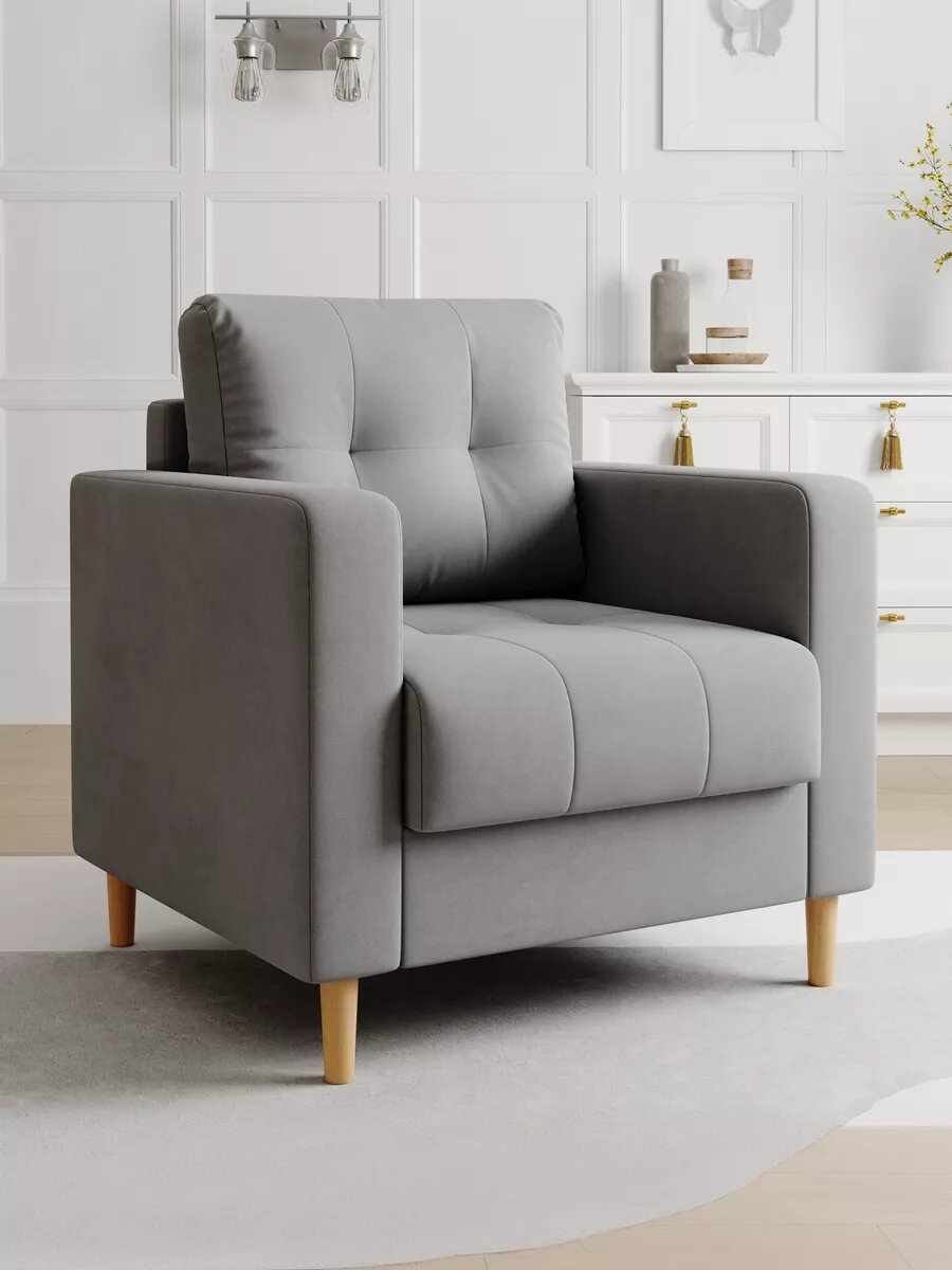 Кресло мягкое Руми, велюр, цвет серый с подлокотниками 76х70х86 см, на ножках интересное: