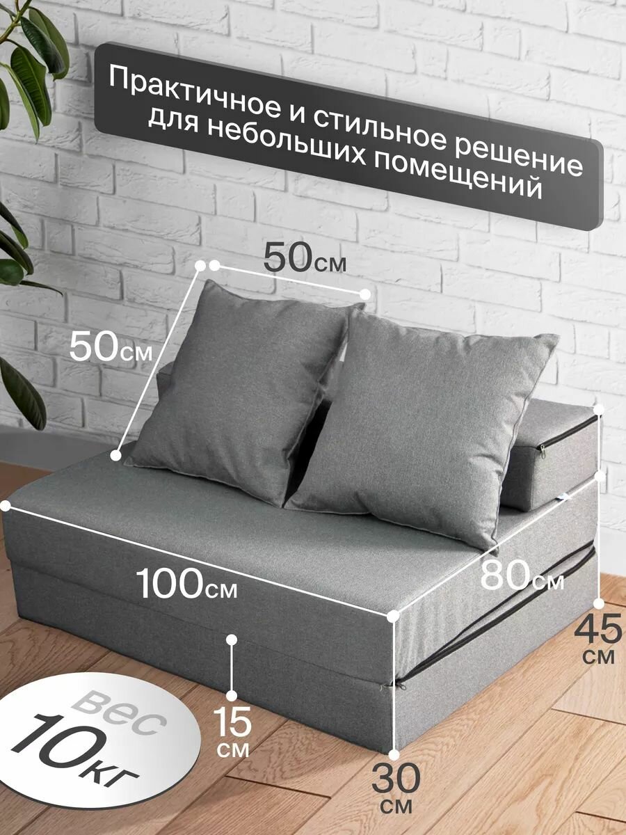 Территория сна Кресло-кровать трансформер серый 100*190*20 см