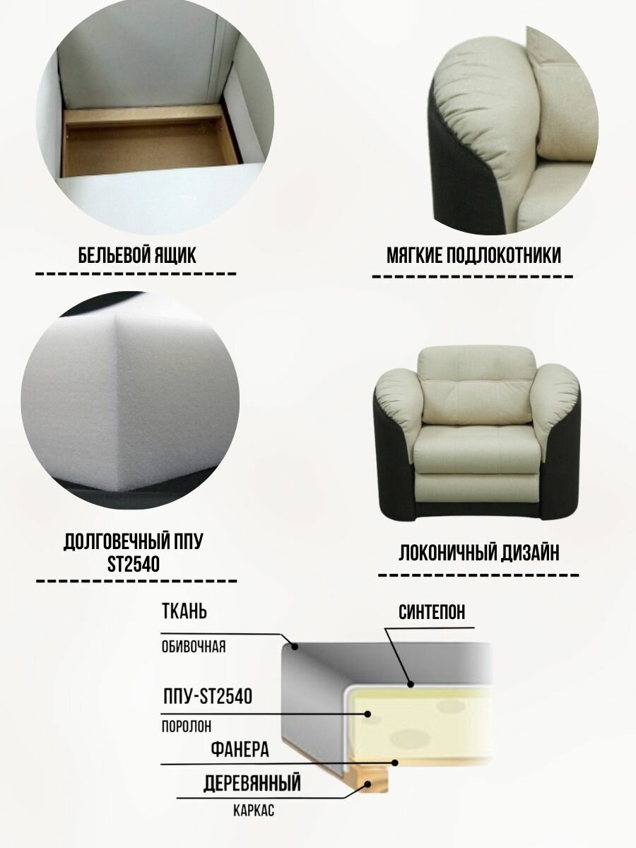 СохранитьКресло-кровать Император 4 Бежево - коричневая рогожка, 120х94х92 см, с ящиком для белья интересное: