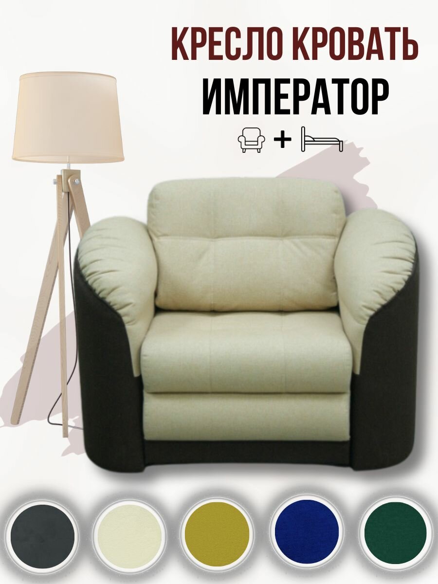 Кресло-кровать Император 4 Бежевый Велюр Экокожа, 120х94х92 см, с ящиком для белья