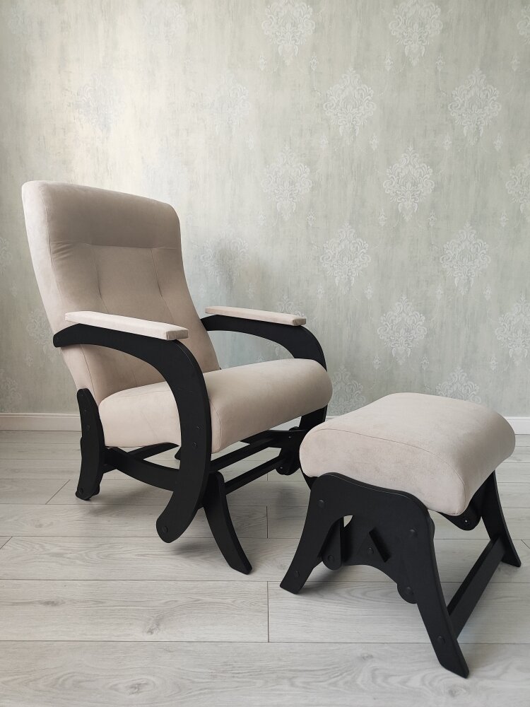 Кресло качалка с пуфом для ног комплект Гранд бежевый/венге интересное: