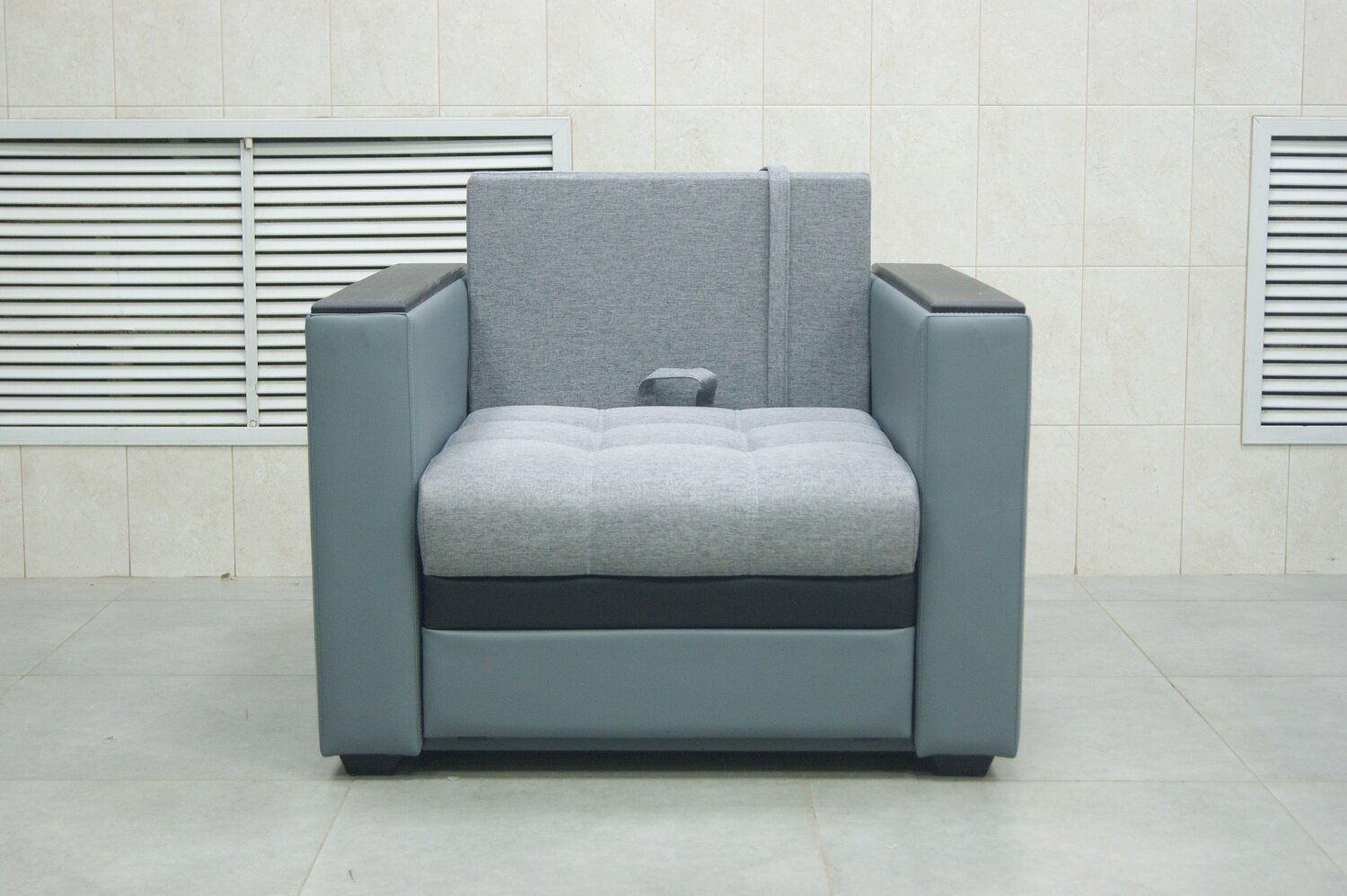 Купить Кресло-кровать Атланта Светло Серая Рогожка Экокожа, 90х91х88 см, с ящиком для белья