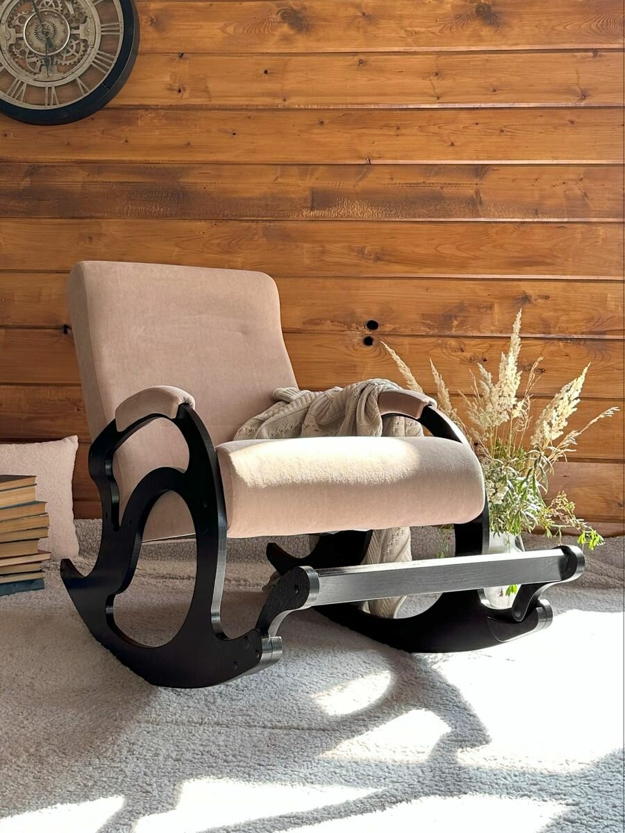 Кресло качалка для дома Ларгус бежевое с подножкой интересное: