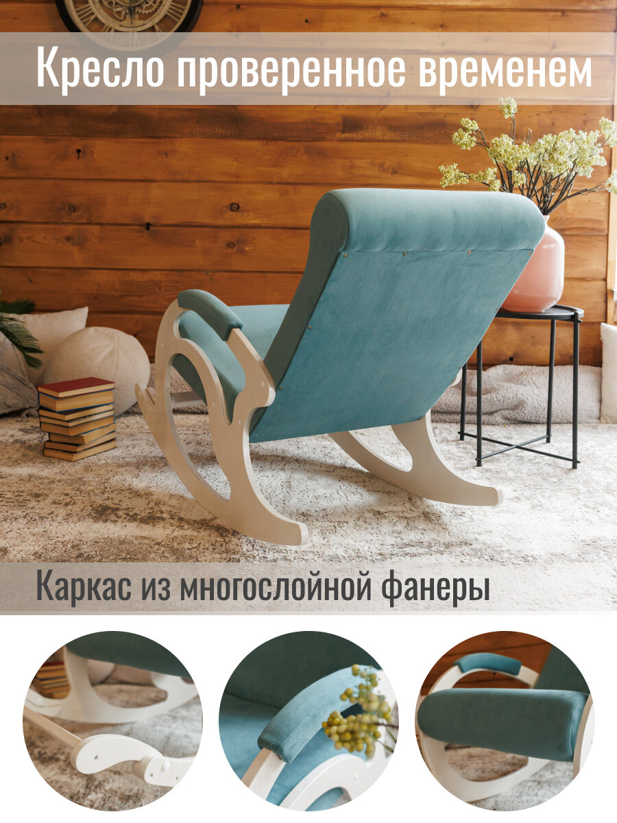 Кресло-качалка для дома и дачи, Ларгус, бирюзовый велюр, с подножкой интересное: