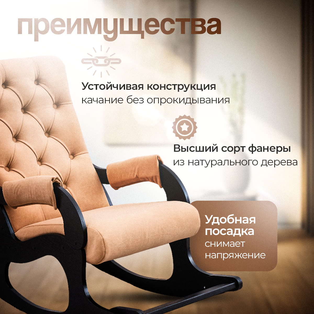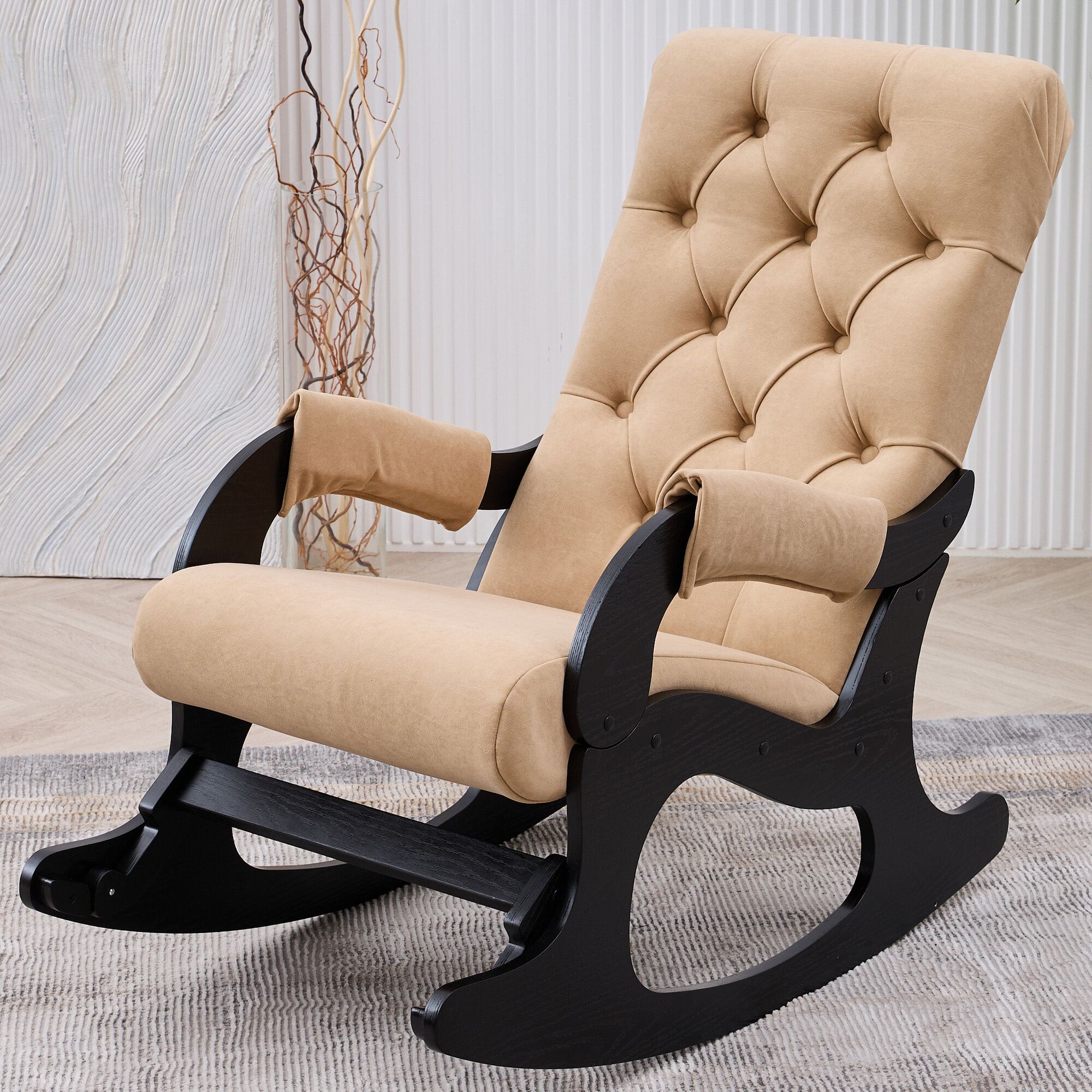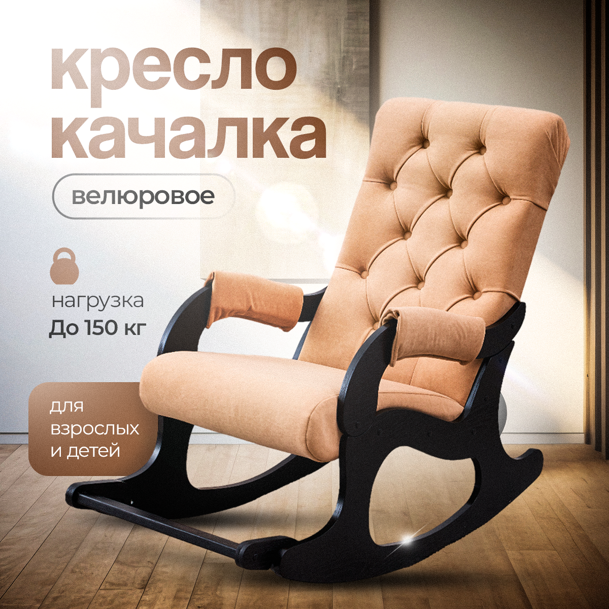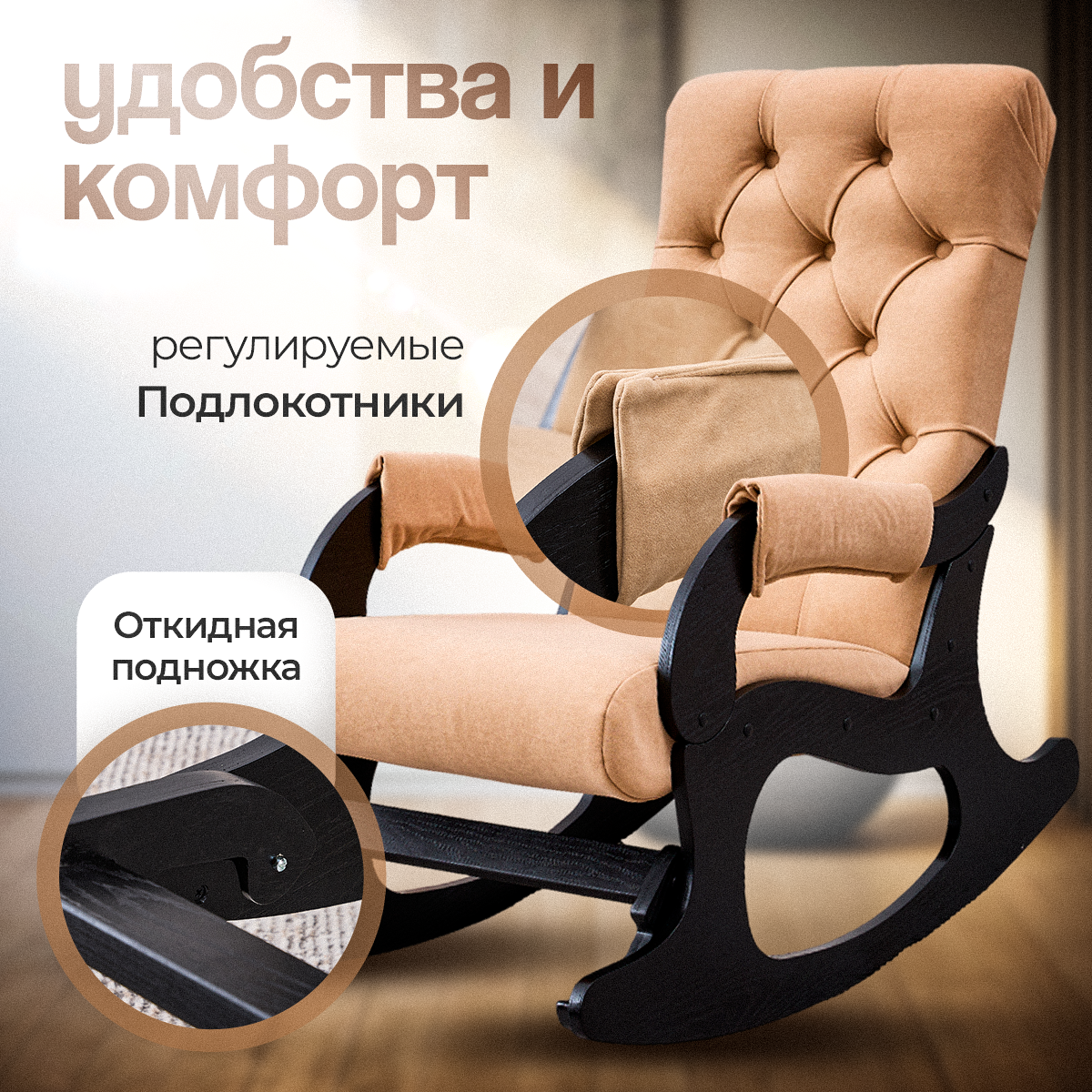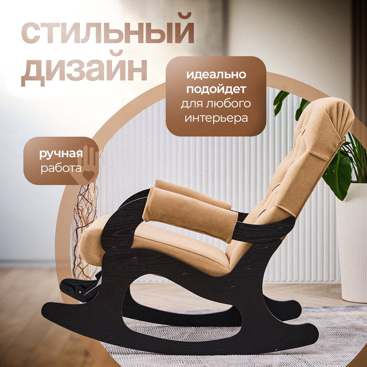 Кресло-качалка AVK "Бисквит Велюр", с подлокотниками, велюр/фанера, песочно-венге интересное: