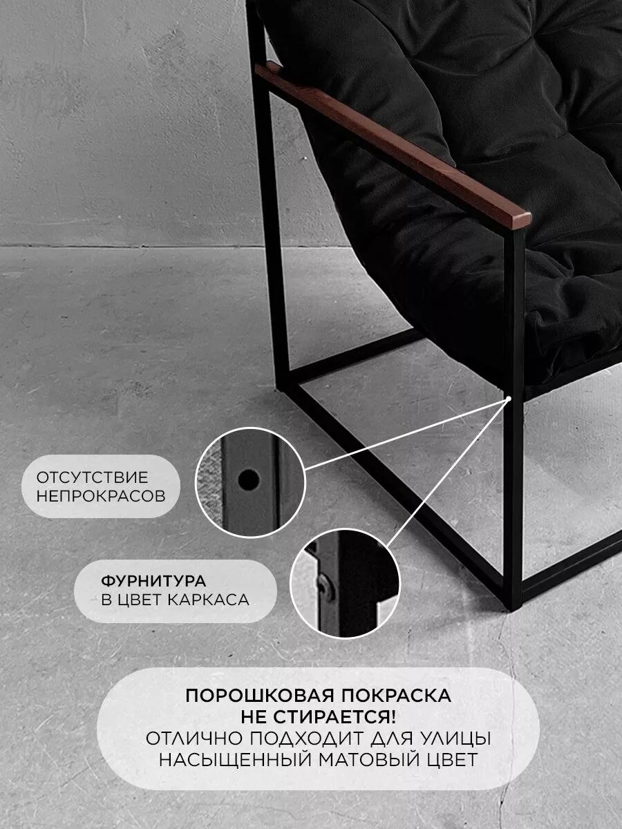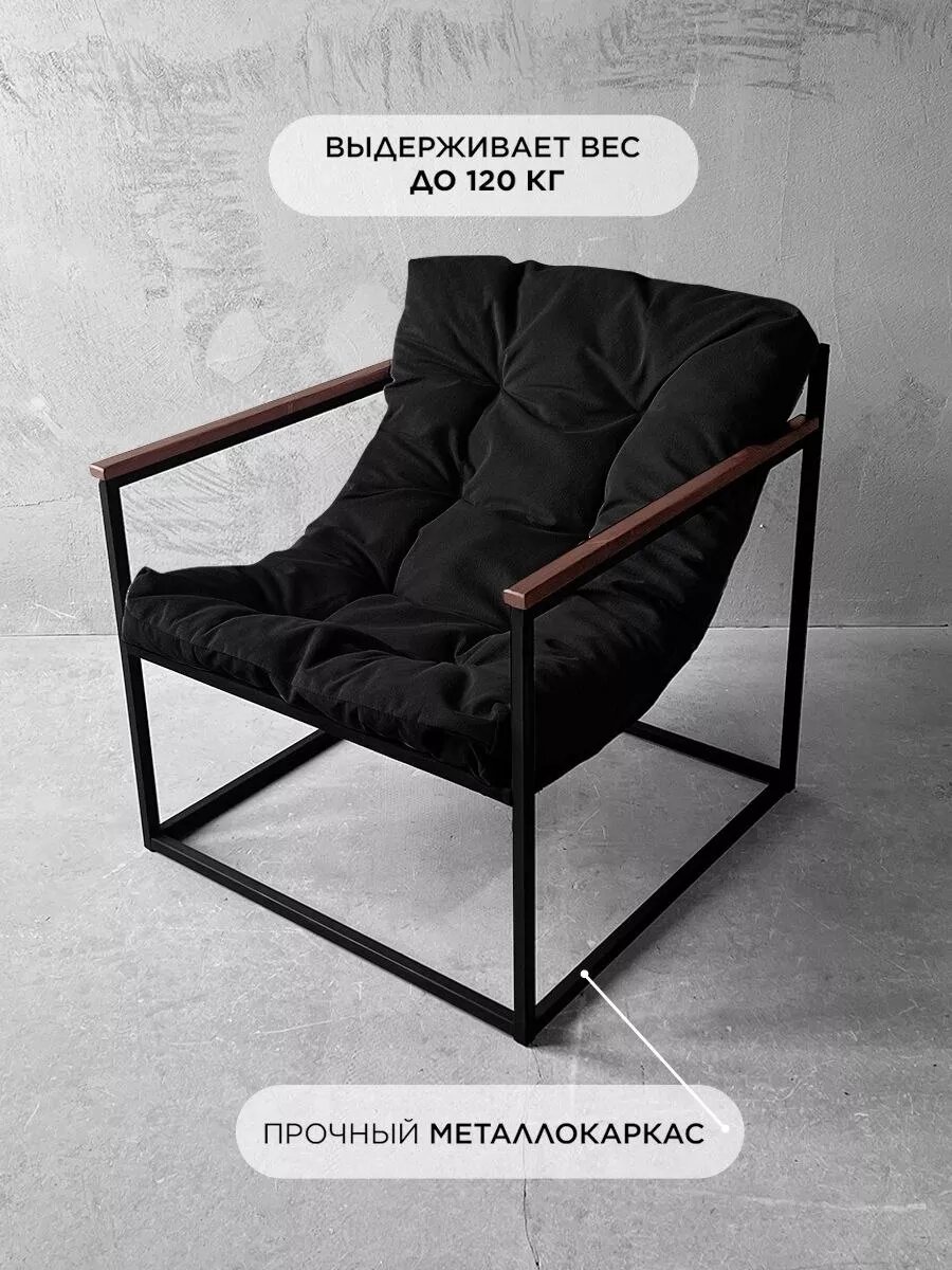 СохранитьКресло мягкое удобное для отдыха, уличное, на балкон, на веранду, в стиле лофт, минимализм, Комфи ++ велюр черный интересное:
