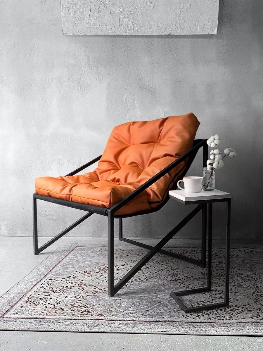 СохранитьКресло мягкое удобное для отдыха, уличное, на балкон, веранду, в стиле лофт, минимализм, Слэш + Кожзам оранжевый интересное: