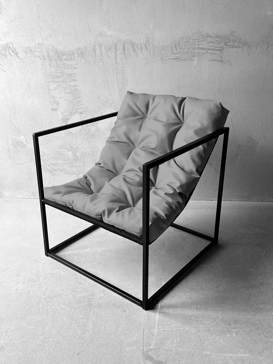 Купить Кресло мягкое удобное для отдыха, уличное, на балкон, веранду, в стиле лофт, минимализм, Лофтовик + Серый кожзам