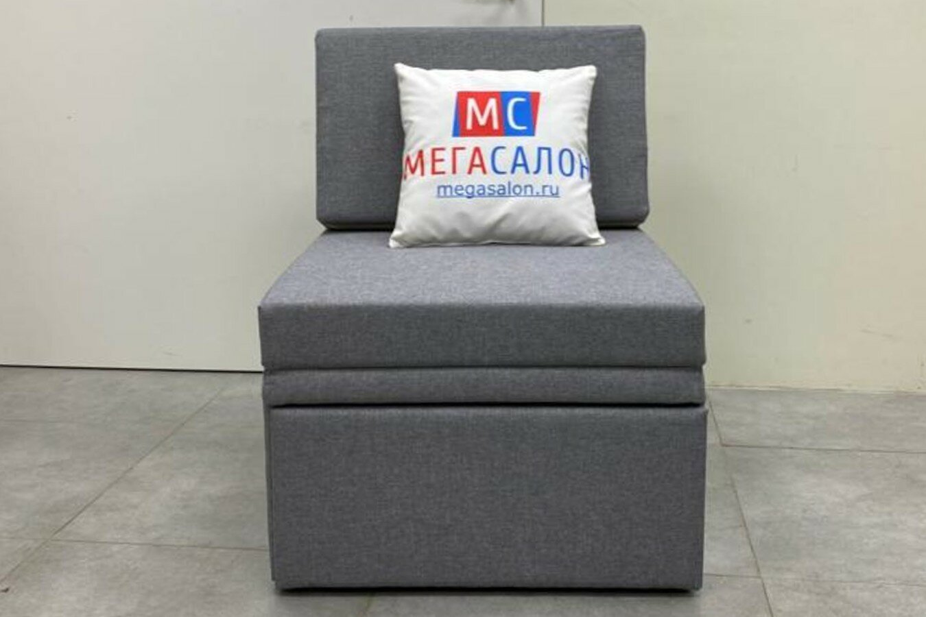 Кресло-кровать Мега-мини Серая Рогожка, 66х75х88 см, с ящиком для белья