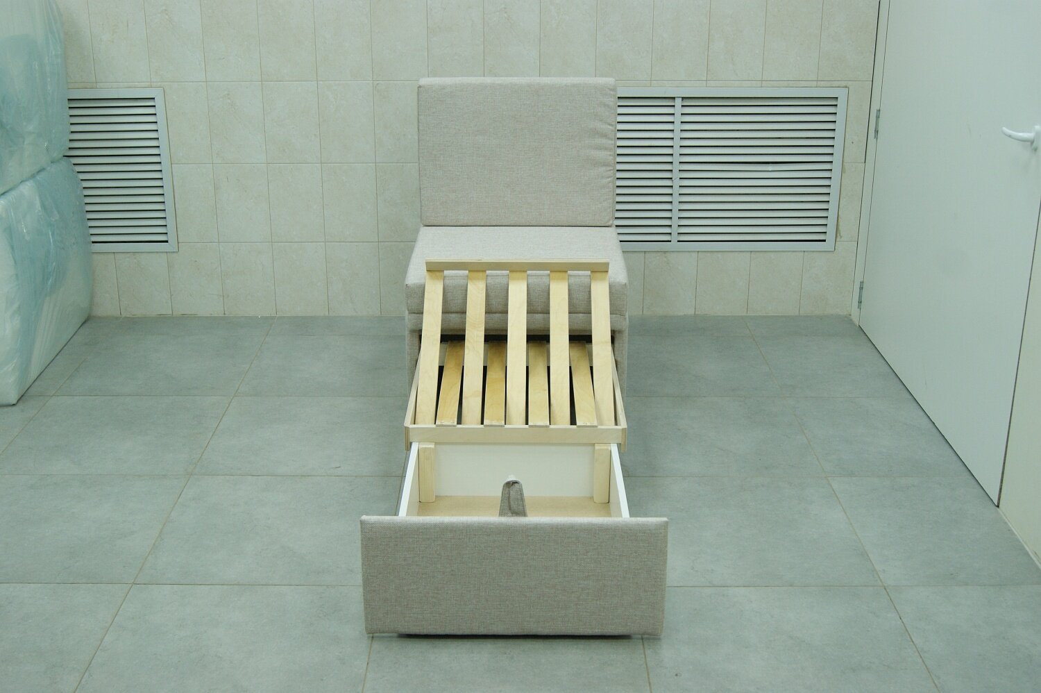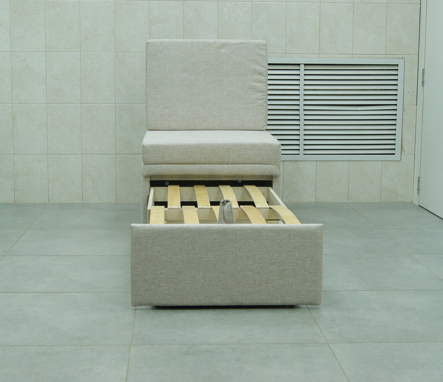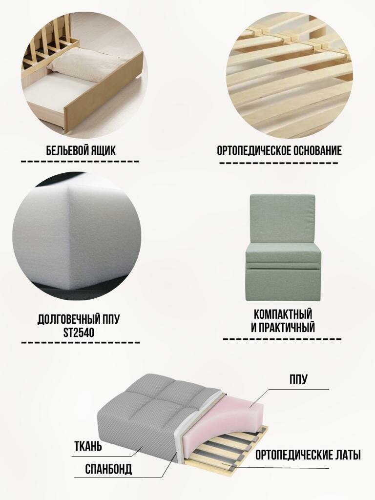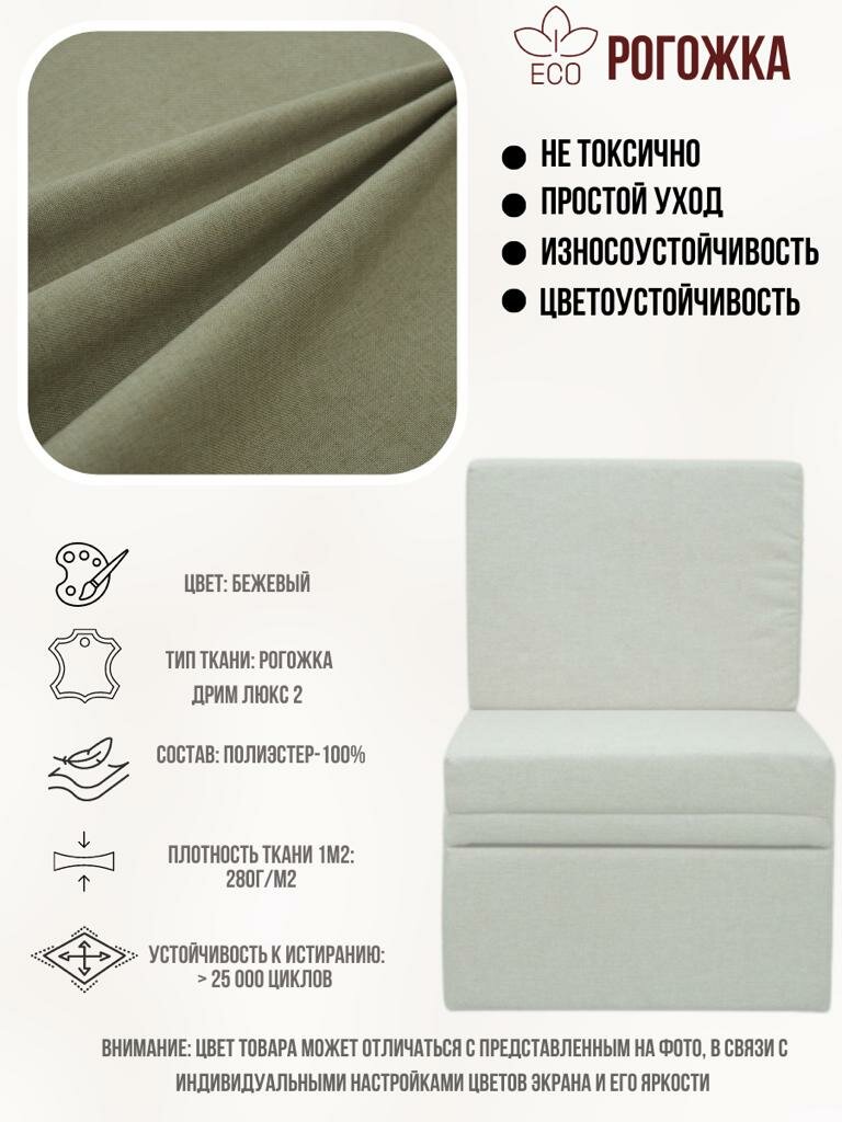 Кресло-кровать Мега-мини Бежевая Рогожка, 66х75х88 см, с ящиком для белья интересное:
