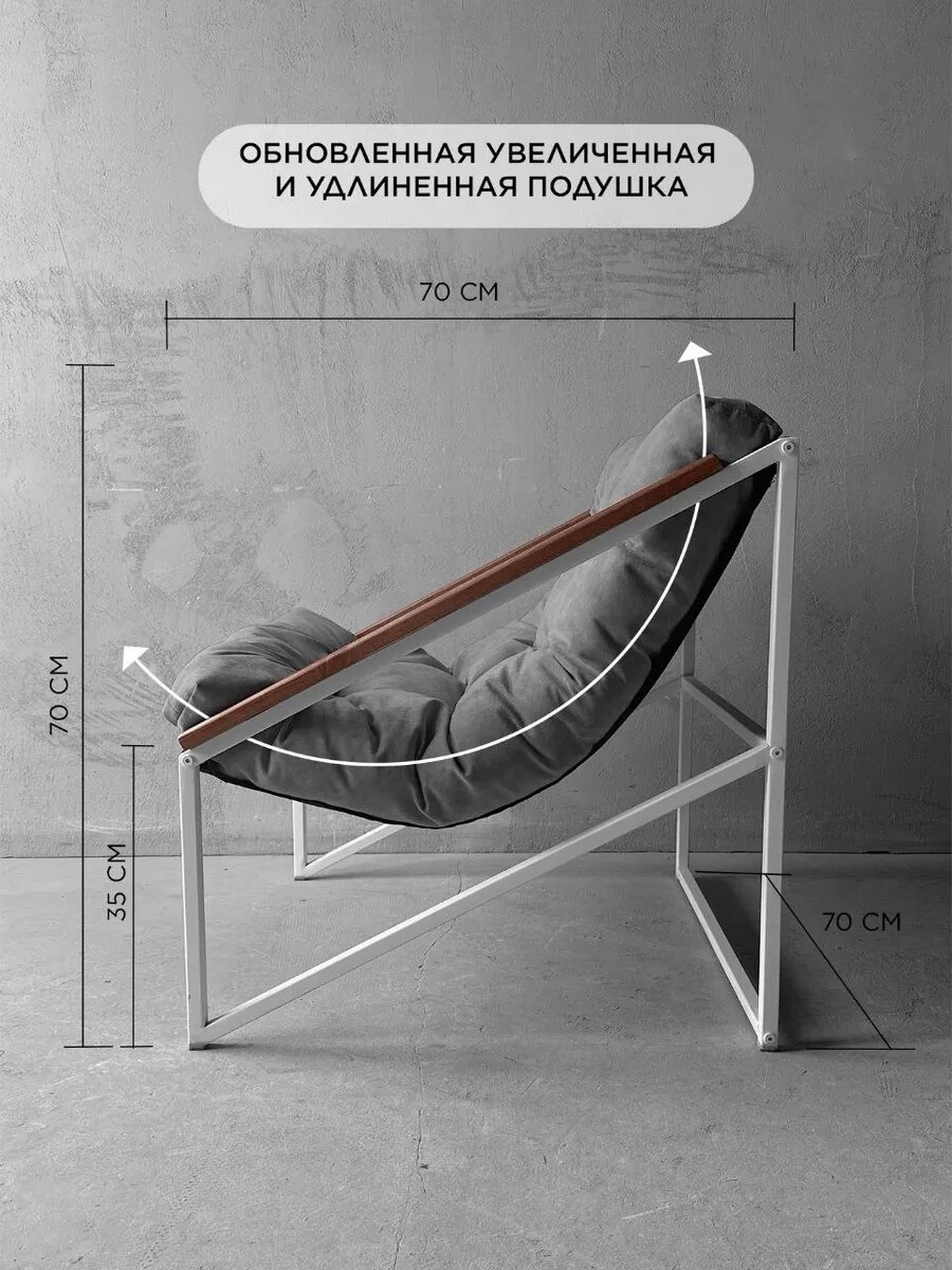 СохранитьКресло мягкое удобное для отдыха, уличное, на балкон, на веранду, в стиле лофт, минимализм, Слэш ++ велюр серый интересное: