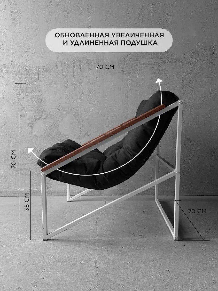 СохранитьКресло мягкое удобное для отдыха, уличное, на балкон, на веранду, в стиле лофт, минимализм, Слэш ++ велюр черный интересное: