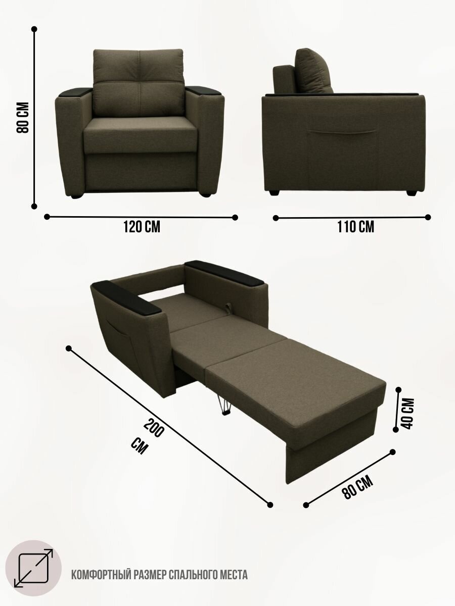 СохранитьКресло-кровать Майами (Дубай) 2 Коричневое Велюр, 120х110х80 см, с ящиком для белья интересное: