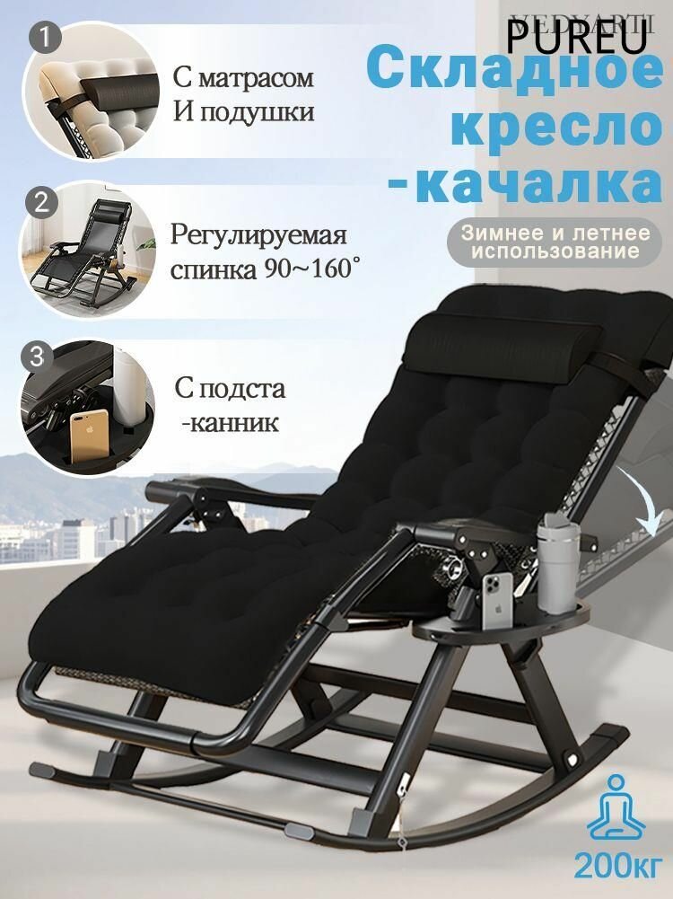 Кресло-качалка PUREU, обивка искусственная кожа, металл, шелковое волокно, черное интересное: