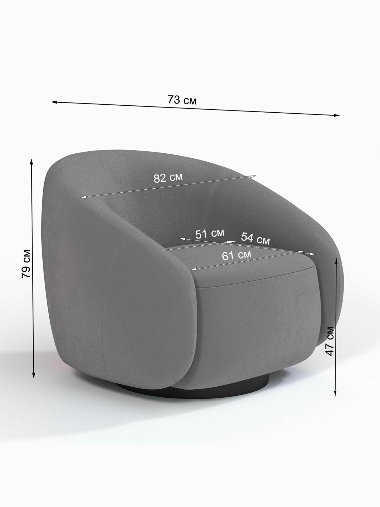 Купить Кресло Крутящееся Manons Maison Kali, механизм Нераскладной, Велюр серый/цоколь Black, 82х73х79 см