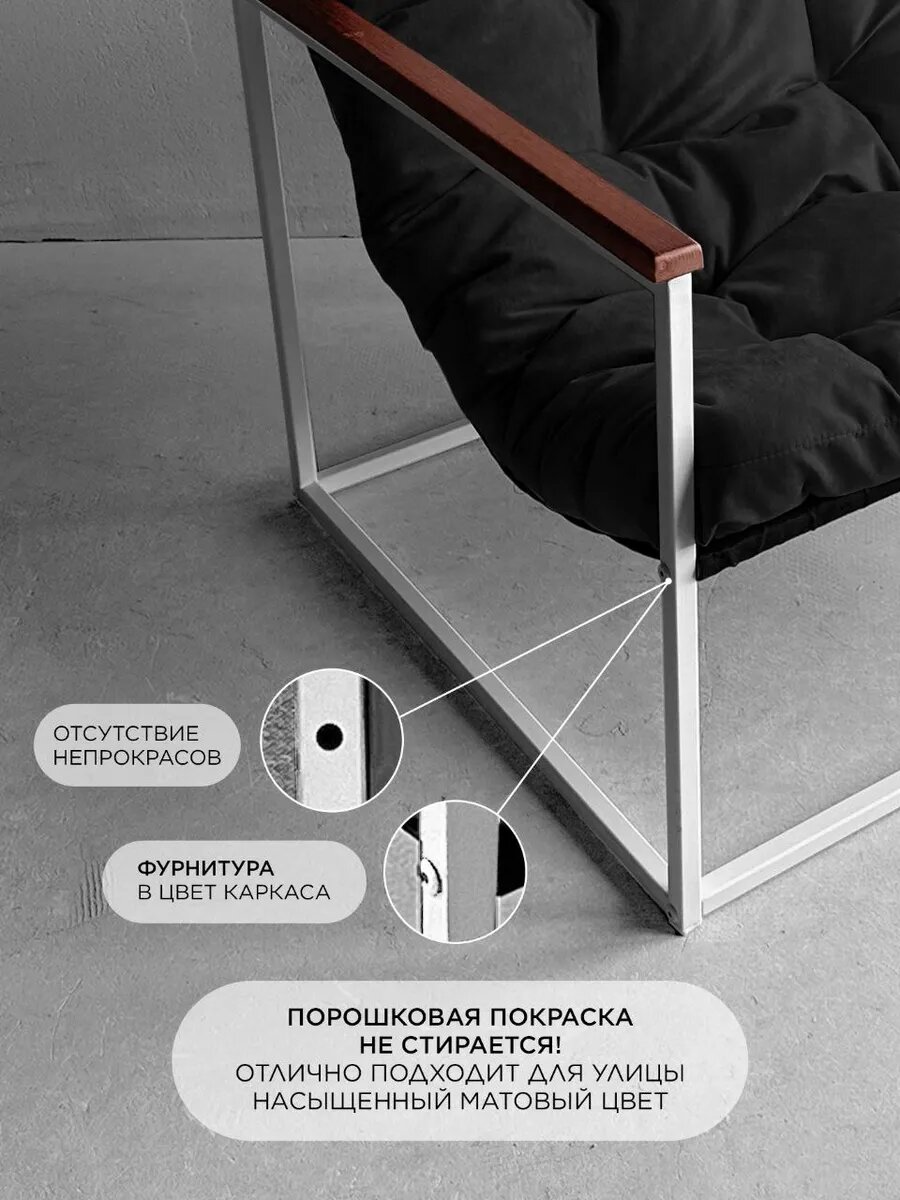 Кресло мягкое удобное для отдыха, уличное, на балкон, на веранду, в стиле лофт, минимализм, Комфи ++ велюр черный