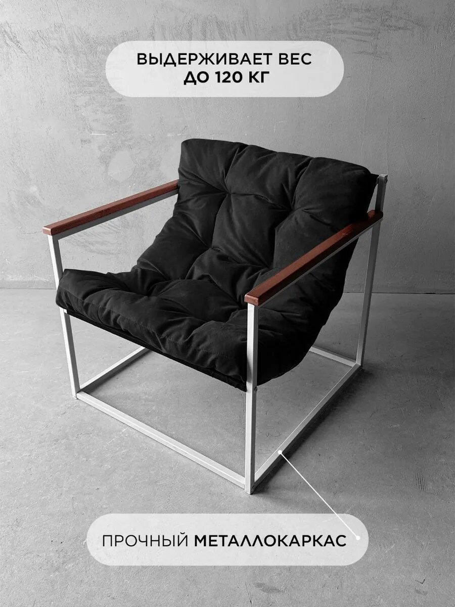 СохранитьКресло лофт мягкое удобное для отдыха, уличное, на балкон, на веранду, во двор, в баню, Комфи ++ велюр черный интересное:
