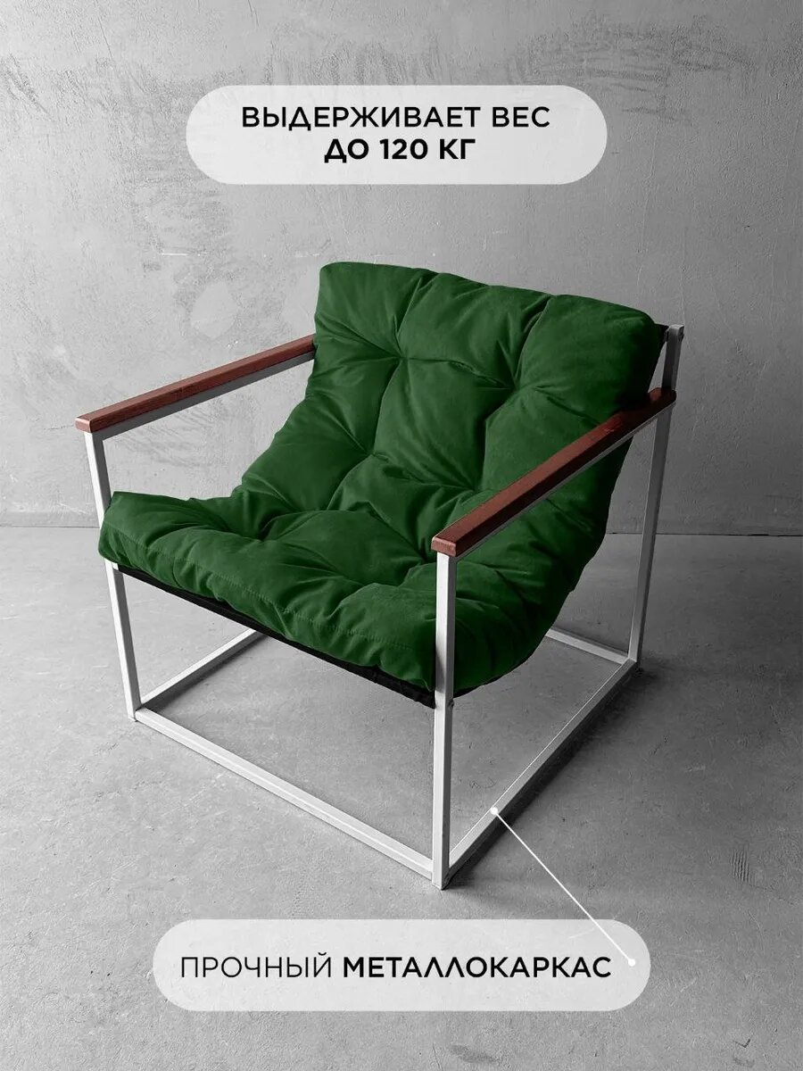 Купить Кресло лофт мягкое удобное для отдыха, уличное, на балкон, на веранду, во двор, в баню, Комфи ++ велюр зеленый