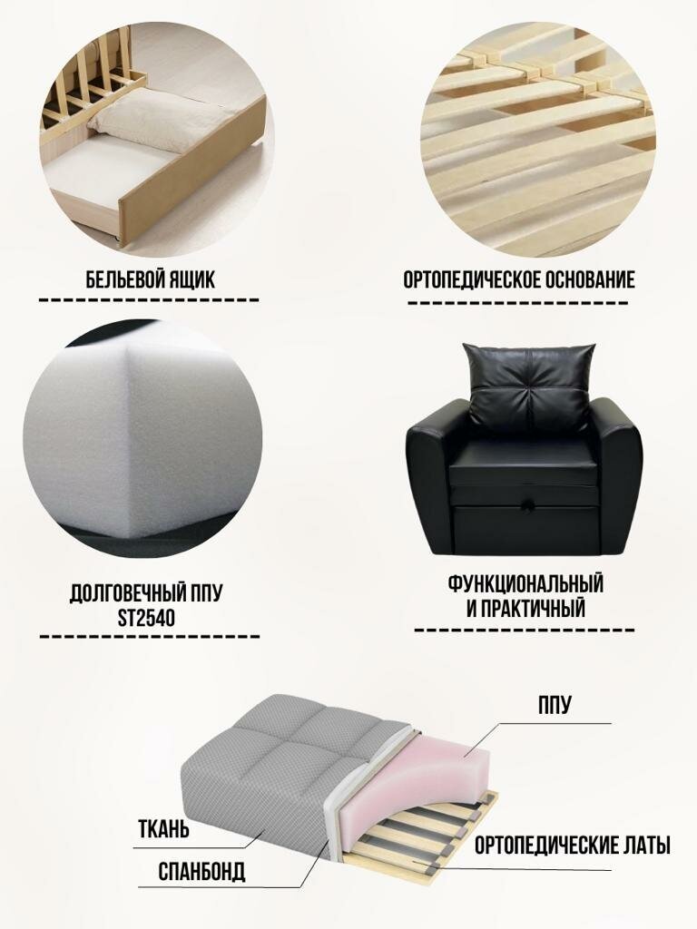 Кресло-кровать Квадрига черное, 106х80х90 см, с ящиком для белья интересное: