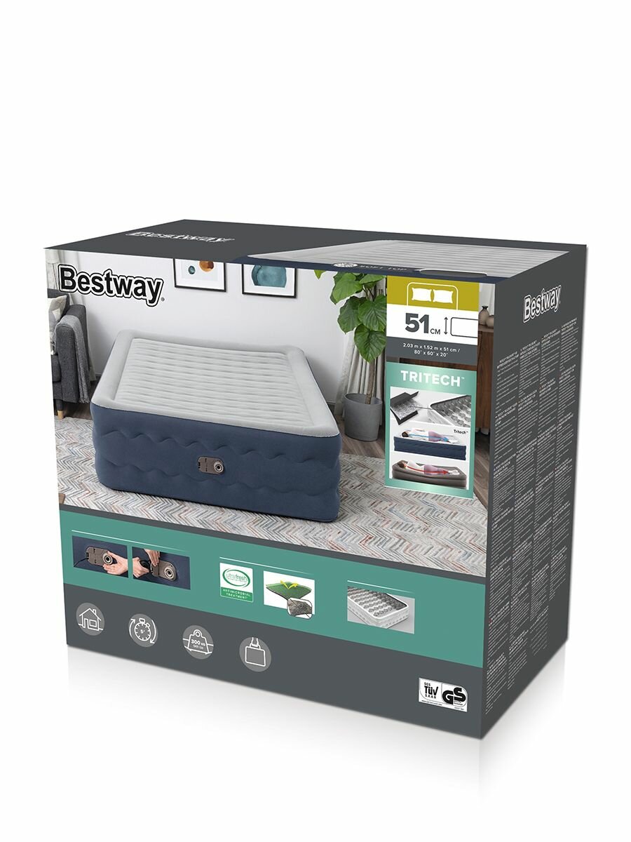 Купить Кровать надувная двуспальная Bestway Tritech 6716P, с встроенным насосом, 152 см x 203 см x 51 см, до 300 кг