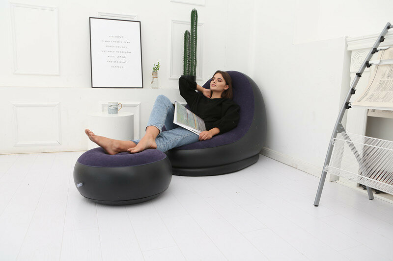 Купить Надувное универсальное кресло с насосом, для дома и дачи, сине-черное, 116x98x83 см