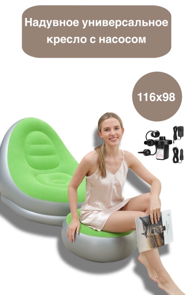 Ниже Вы можете прочитать отзывы на Надувное универсальное кресло с насосом, для дома и дачи, серебряно-зеленое, 116x98x83 см, ознакомится с подробными характеристиками, посмотреть интересные обзоры и фотографии на Надувное универсальное кресло с насосом, для дома и дачи, серебряно-зеленое, 116x98x83 см.