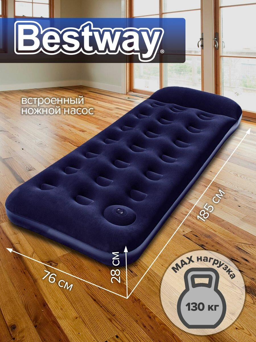Матрас надувной односпальный Bestway + встроенный ножной насос 185x76x28см 67223 интересное: