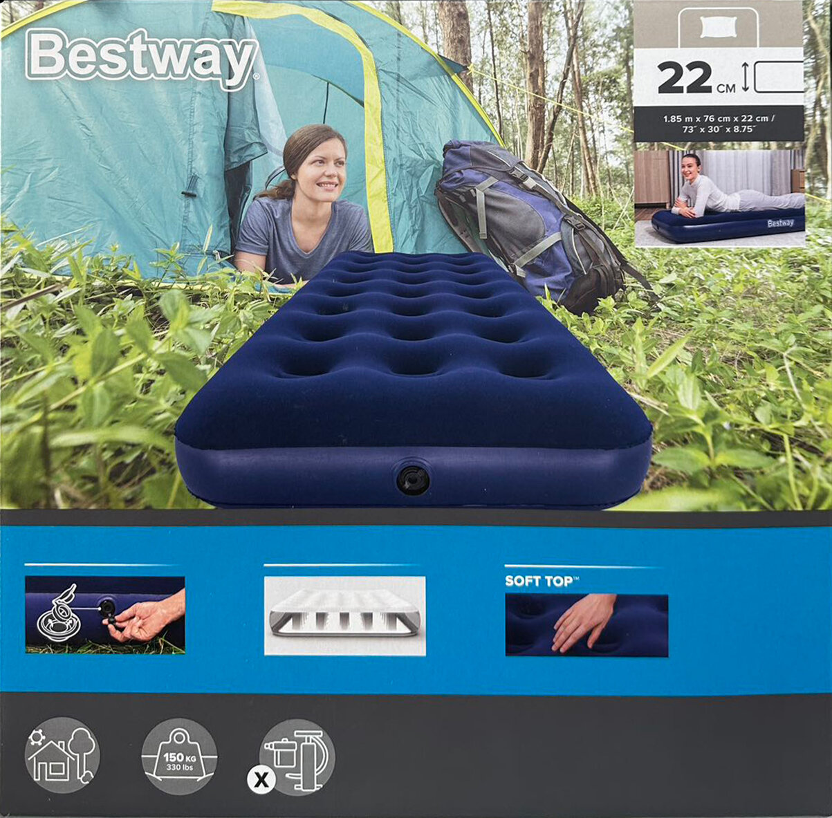 Купить Одноместный надувной матрас Bestway, синий, 185 х 76 х 22 см