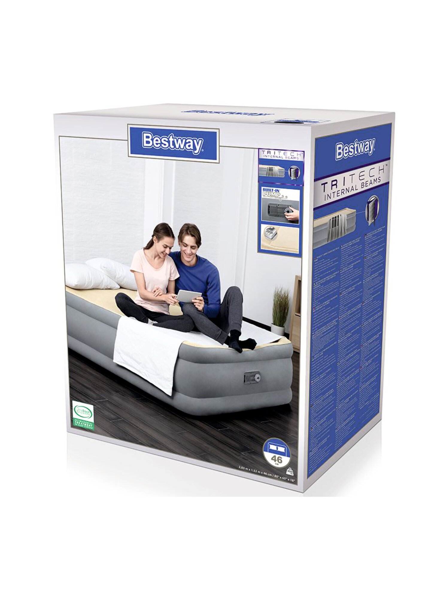 Матрас надувной двуспальный с мягким покрытием и встроенным электрическим насосом 203 х 152 х 46 см Bestway Quin (67486) интересное: