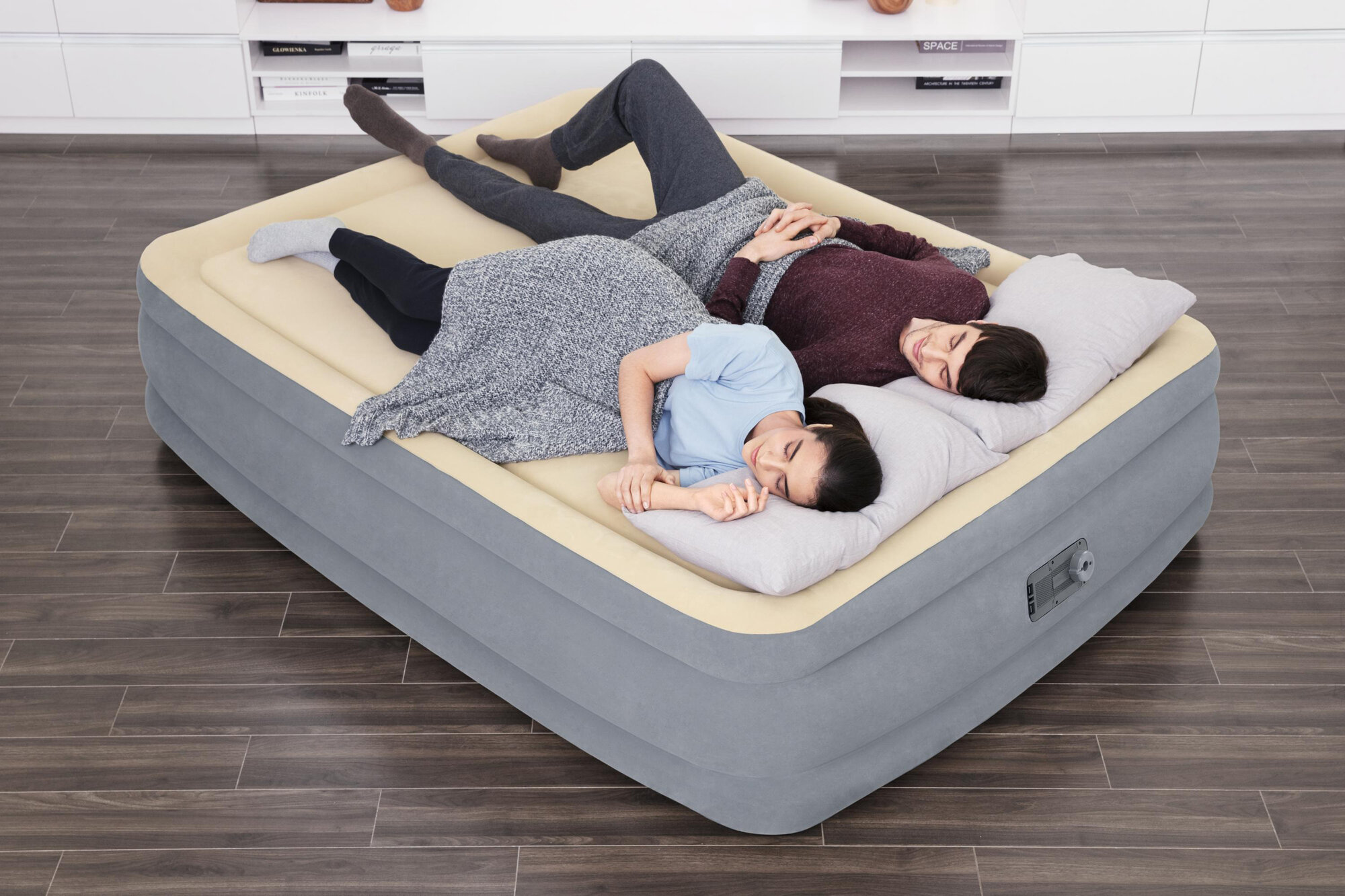Купить Матрас надувной двуспальный с мягким покрытием и встроенным электрическим насосом 203 х 152 х 46 см Bestway Quin (67486)