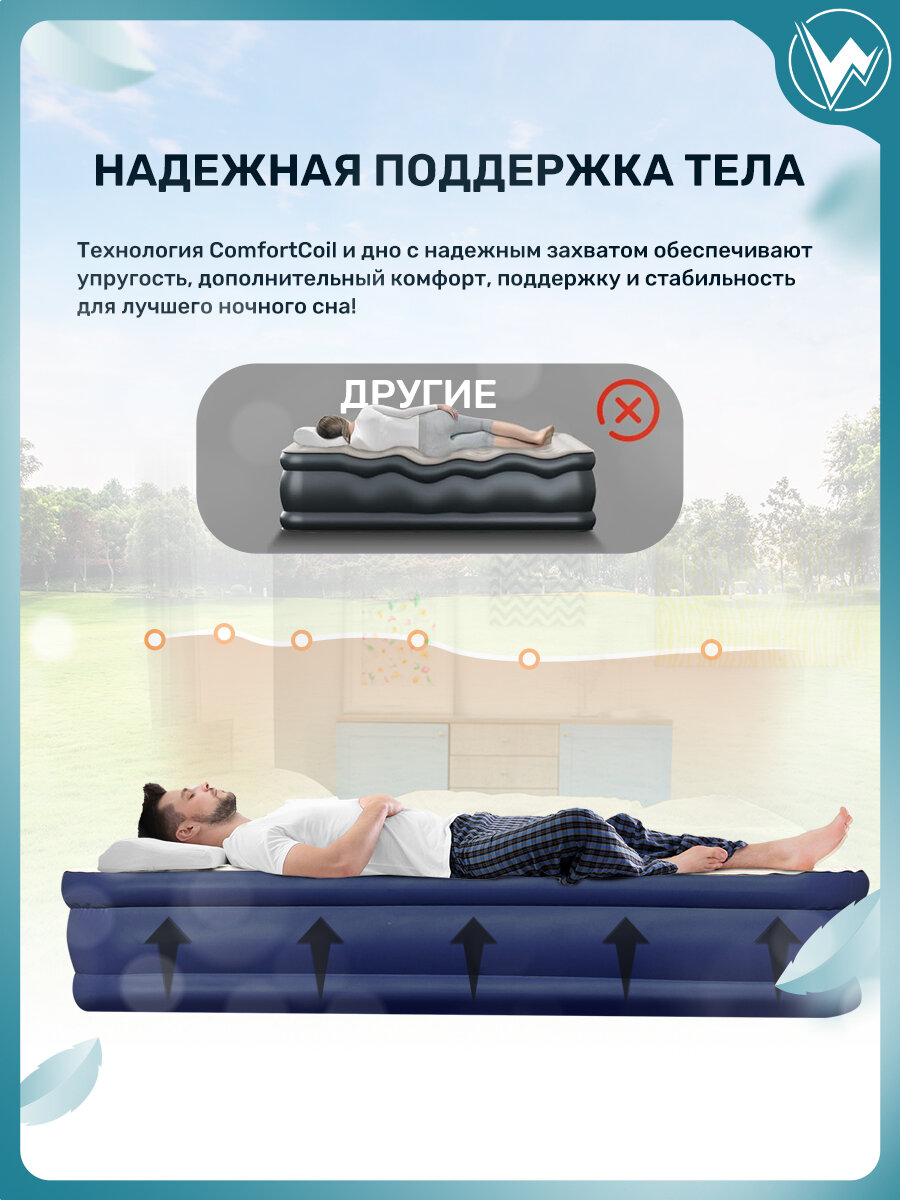 Надувная кровать 200x150x40, насос встроенный электрический, Синий интересное: