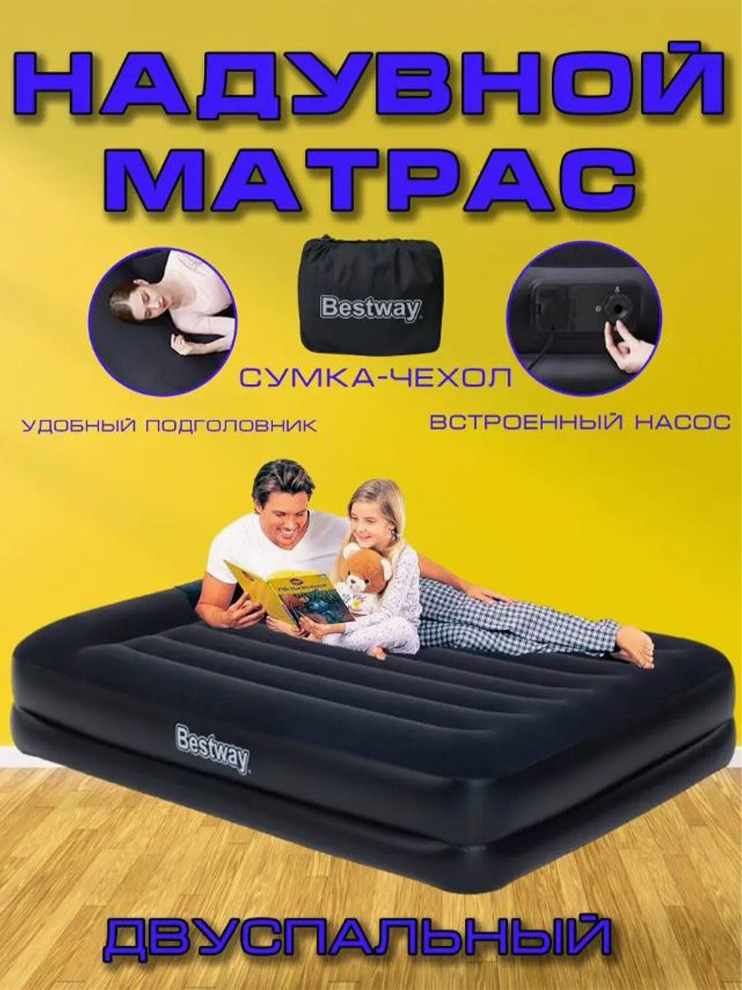 Кровать надувная "Bestway" премиум качества со встроенным насосом черного цвета интересное: