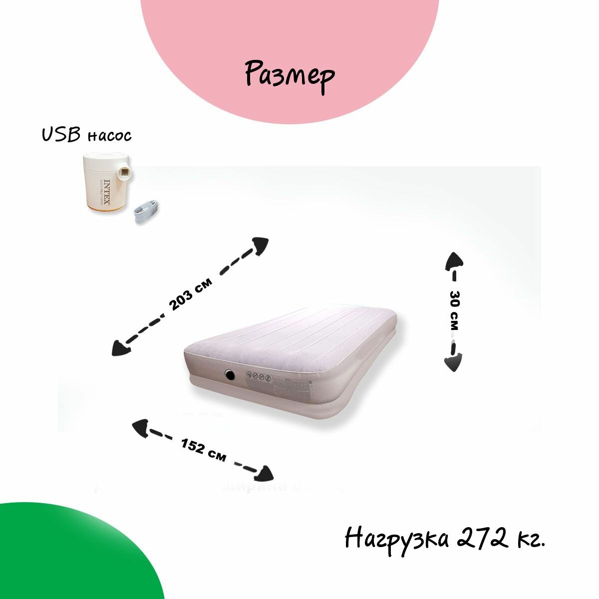 Надувной матрас Intex 64179 двуспальный 152х203х30см с USB насосом интересное: