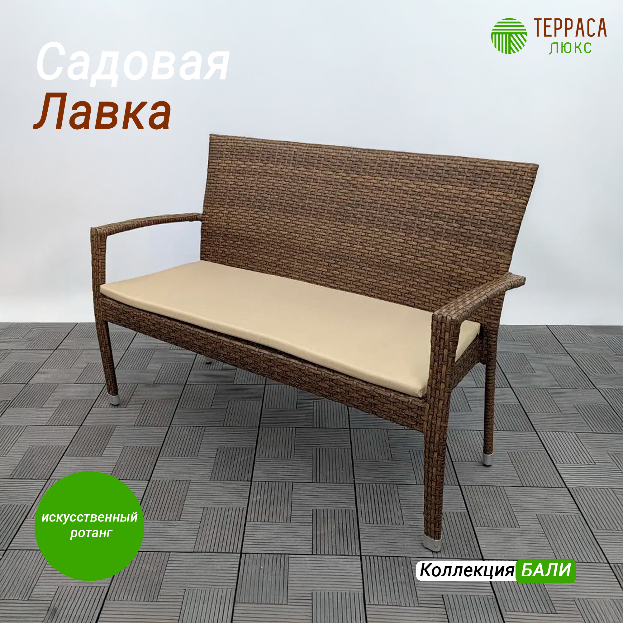 Скамейка плетеная Бали, темно-коричневая, искусственный ротанг, 60x91x132 см, с подушкой интересное: