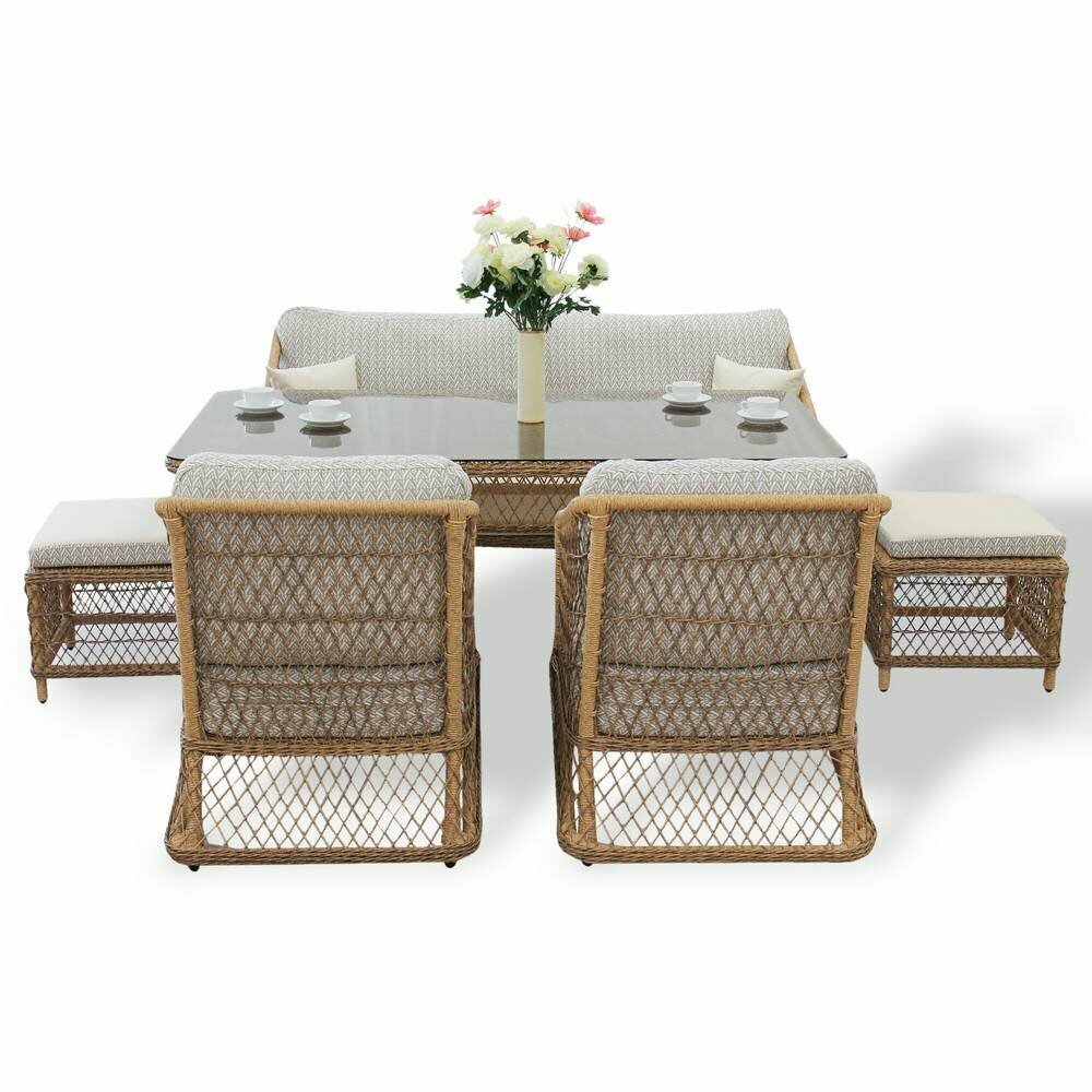 Обеденный комплект мебели Пуччини на 7 персон от Malacca из искусственного ротанга с диваном интересное:
