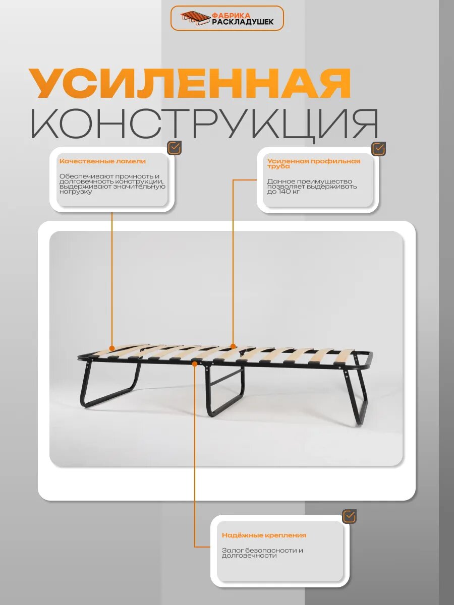 Раскладушка Фабрика-Раскладушек "Либра +80", с матрасом, усиленный каркас, 195x80x39 см интересное: